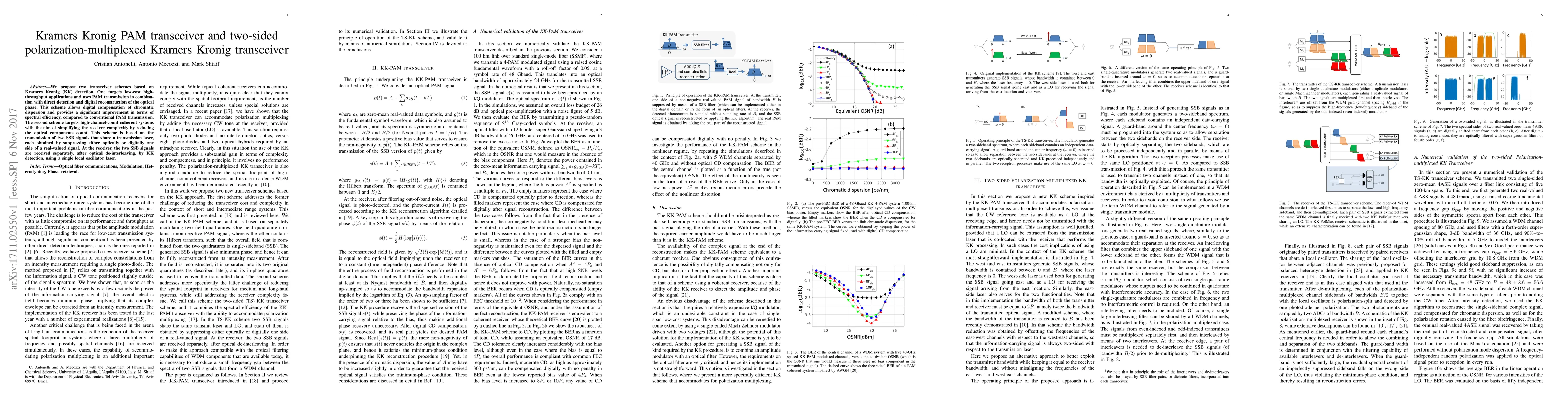 We propose two transceiver schemes based on Kramers Kronig (KK) detection. One targets low-cost high-throughput applications and uses PAM transmission in combination with direct detection and digital reconstruction of the optical phase. This scheme allows digital compensation of chromatic dispersion and provides a significant improvement in terms of spectral efficiency, compared to conventional PAM transmission. The second scheme targets high-channel-count coherent systems with the aim of simplifying the receiver complexity by reducing the optical components count.