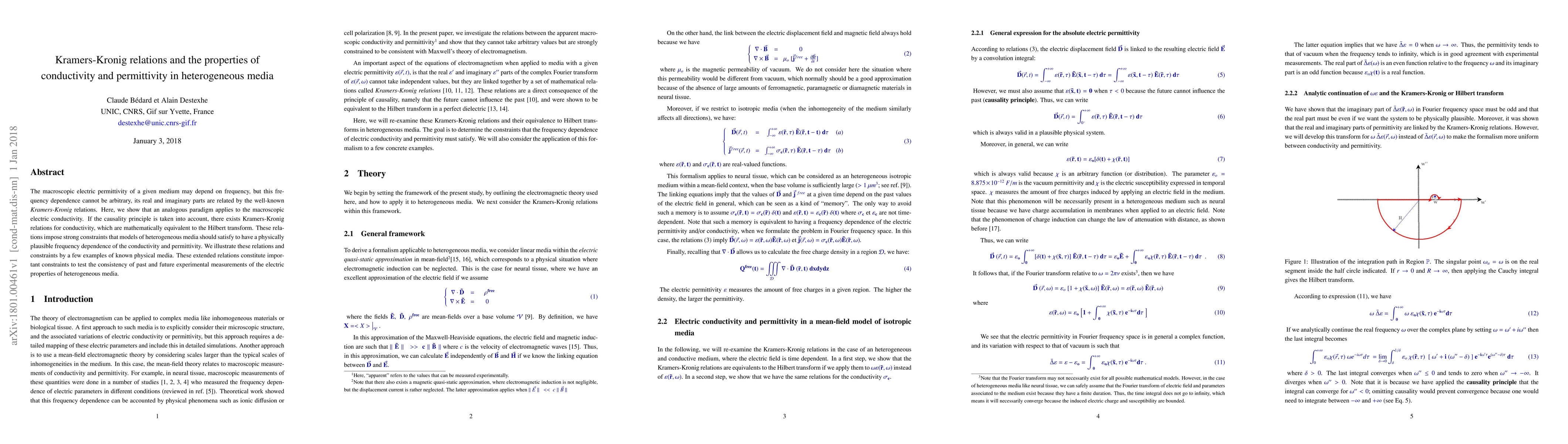 The macroscopic electric permittivity of a given medium may depend on frequency, but this frequency dependence cannot be arbitrary, its real and imaginary parts are related by the well-known Kramers-Kronig relations. Here, we show that an analogous paradigm applies to the macroscopic electric conductivity. If the causality principle is taken into account, there exists Kramers-Kronig relations for conductivity, which are mathematically equivalent to the Hilbert transform. These relations impose strong constraints that models of heterogeneous media should satisfy to have a physically plausible frequency dependence of the conductivity and permittivity. We illustrate these relations and constraints by a few examples of known physical media. These extended relations constitute important constraints to test the consistency of past and future experimental measurements of the electric properties of heterogeneous media.