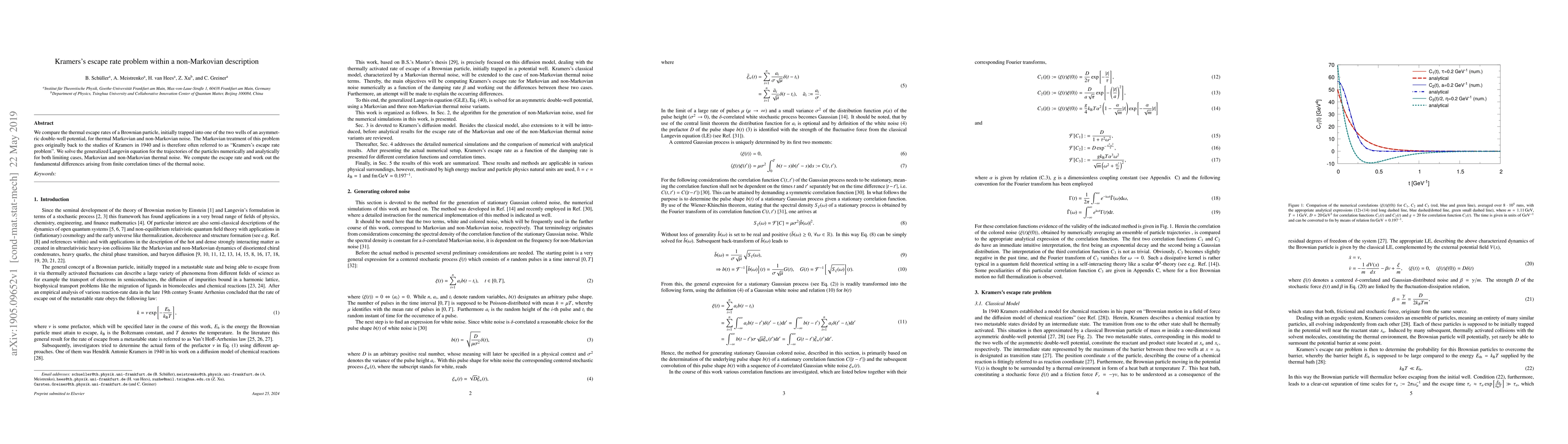 This paper resolves Kramers's escape rate problem using both Markovian and non-Markovian noise models, revealing fundamental differences in thermal escape rates due to finite correlation times of the noise.