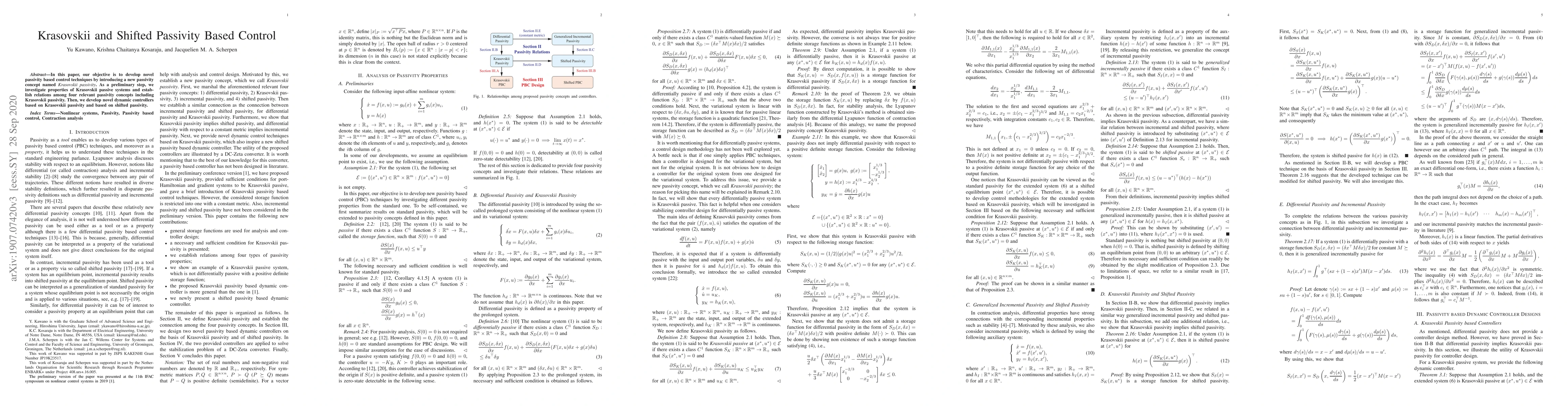 This paper introduces Krasovskii passivity, a novel passivity concept, and explores its properties and relationships with other passivity concepts. It then develops new dynamic controllers based on Krasovskii passivity and extended shifted passivity for control applications.