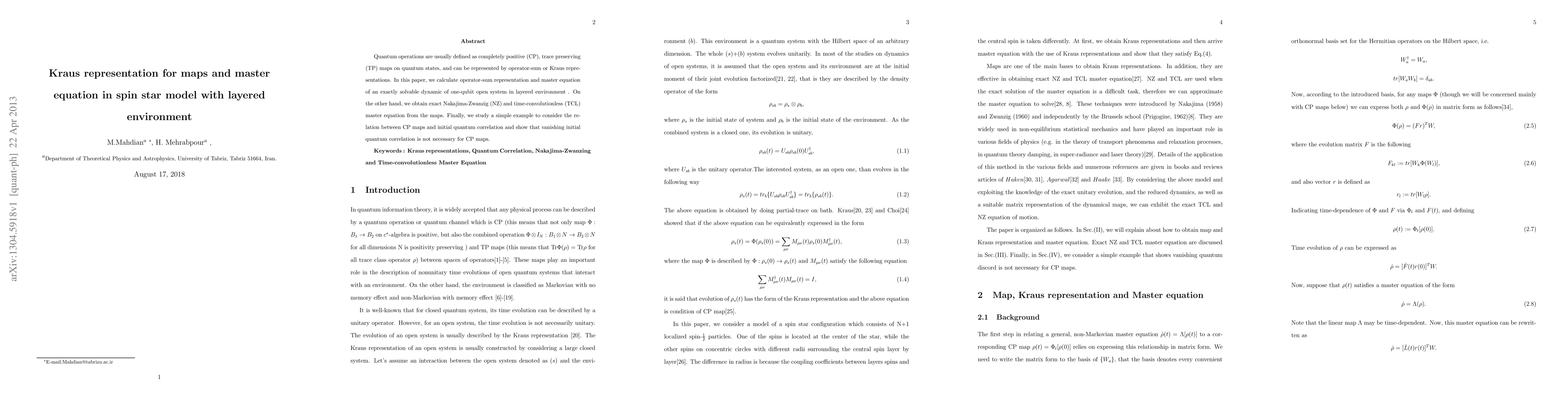 This paper derives the Kraus representation and master equation for a one-qubit open system in a layered environment, obtaining exact Nakajima-Zwanzig and time-convolutionless master equations. It also demonstrates that vanishing initial quantum correlation is not a prerequisite for completely positive maps.