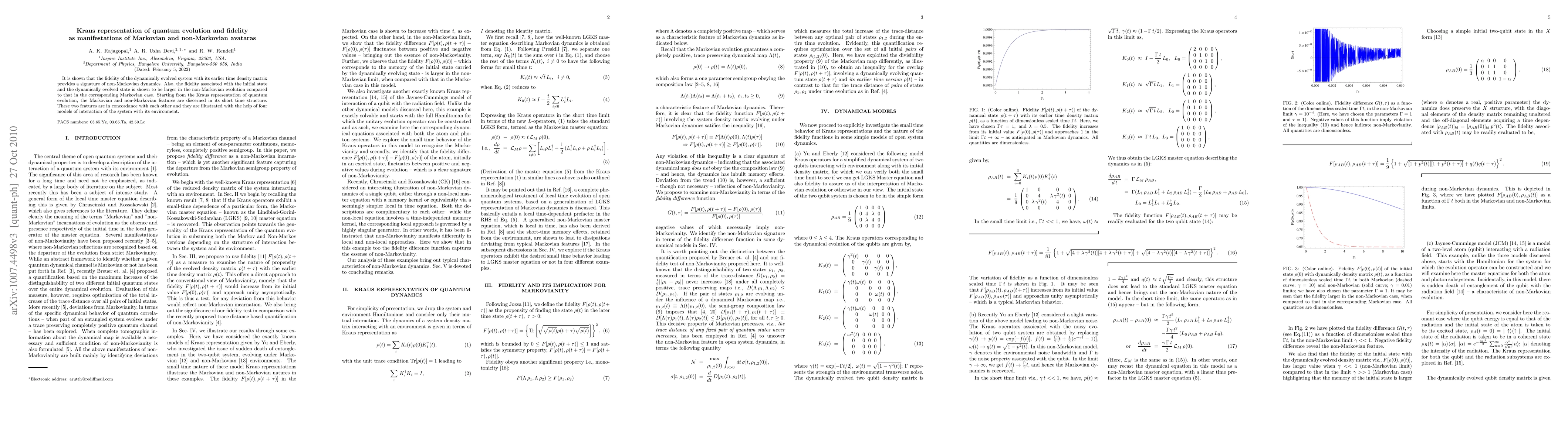It is shown that the fidelity of the dynamically evolved system with its earlier time density matrix provides a signature of non-Markovian dynamics. Also, the fidelity associated with the initial state and the dynamically evolved state is shown to be larger in the non-Markovian evolution compared to that in the corresponding Markovian case. Starting from the Kraus representation of quantum evolution, the Markovian and non-Markovian features are discerned in its short time structure. These two features are in concordance with each other and they are illustrated with the help of four models of interaction of the system with its environment.