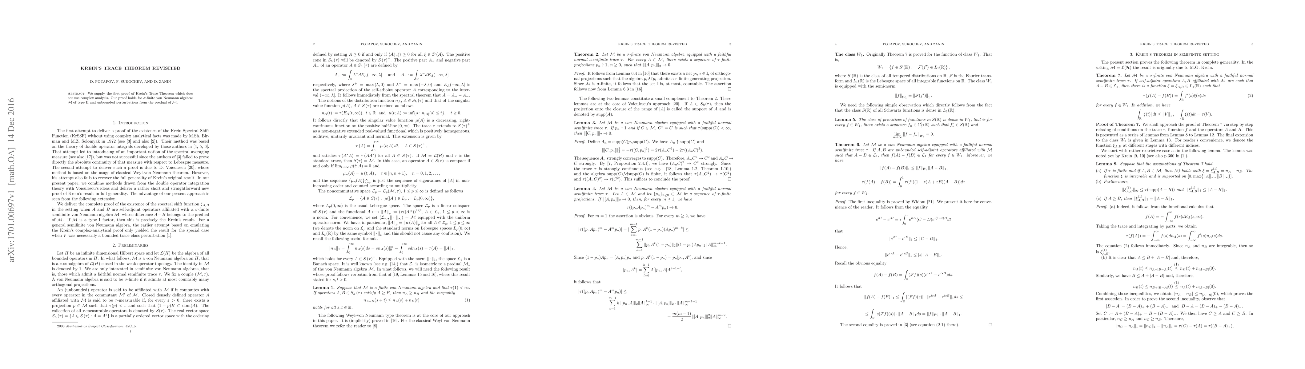 Summary: This paper presents a novel proof of Krein's Trace Theorem without relying on complex analysis, applicable to $\sigma$-finite von Neumann algebras of type II and for unbounded perturbations from the predual of $\mathcal{M}$.