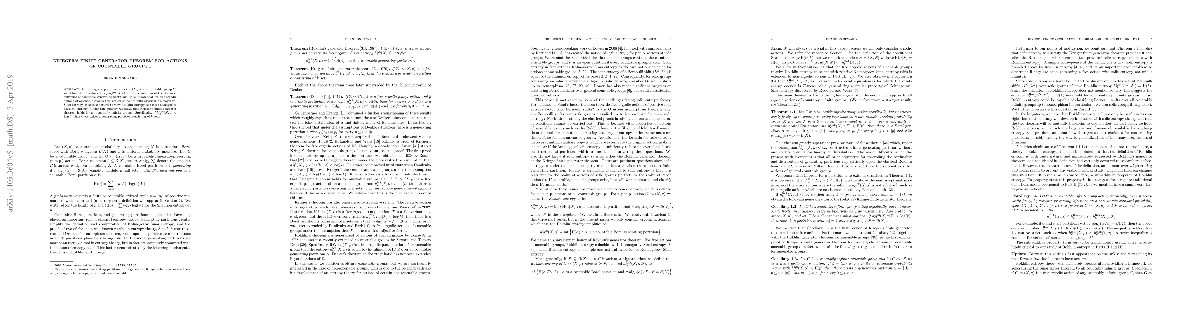 For an ergodic probability-measure-preserving action $G \curvearrowright (X, \mu)$ of a countable group $G$, we define the Rokhlin entropy $h_G^{\mathrm{Rok}}(X, \mu)$ to be the infimum of the Shannon entropies of countable generating partitions. It is known that for free ergodic actions of amenable groups this notion coincides with classical Kolmogorov--Sinai entropy. It is thus natural to view Rokhlin entropy as a close analogue to classical entropy. Under this analogy we prove that Krieger's finite generator theorem holds for all countably infinite groups. Specifically, if $h_G^{\mathrm{Rok}}(X, \mu) < \log(k)$ then there exists a generating partition consisting of $k$ sets.