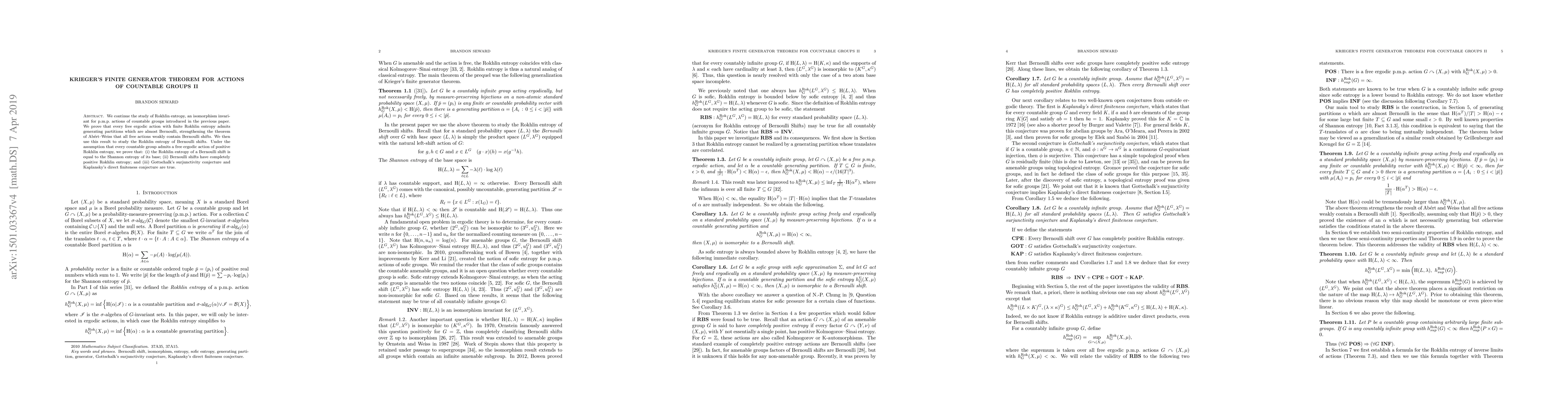 Researchers prove that free ergodic actions with finite Rokhlin entropy admit almost Bernoulli partitions, strengthening an earlier theorem and shedding light on the properties of Bernoulli shifts.