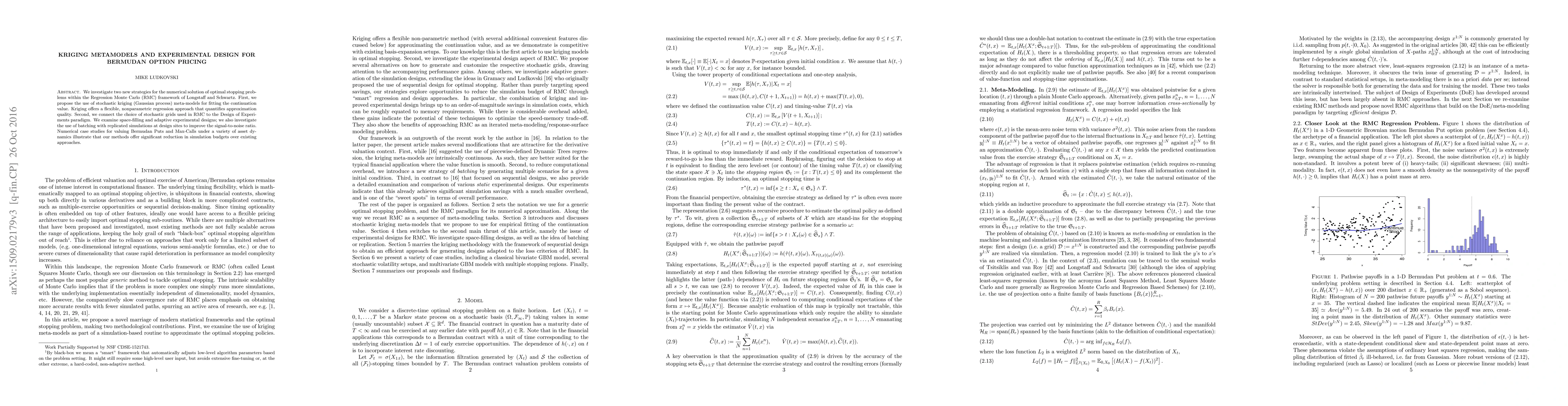 We investigate two new strategies for the numerical solution of optimal stopping problems within the Regression Monte Carlo (RMC) framework of Longstaff and Schwartz. First, we propose the use of stochastic kriging (Gaussian process) meta-models for fitting the continuation value. Kriging offers a flexible, nonparametric regression approach that quantifies approximation quality. Second, we connect the choice of stochastic grids used in RMC to the Design of Experiments paradigm. We examine space-filling and adaptive experimental designs; we also investigate the use of batching with replicated simulations at design sites to improve the signal-to-noise ratio. Numerical case studies for valuing Bermudan Puts and Max-Calls under a variety of asset dynamics illustrate that our methods offer significant reduction in simulation budgets over existing approaches.