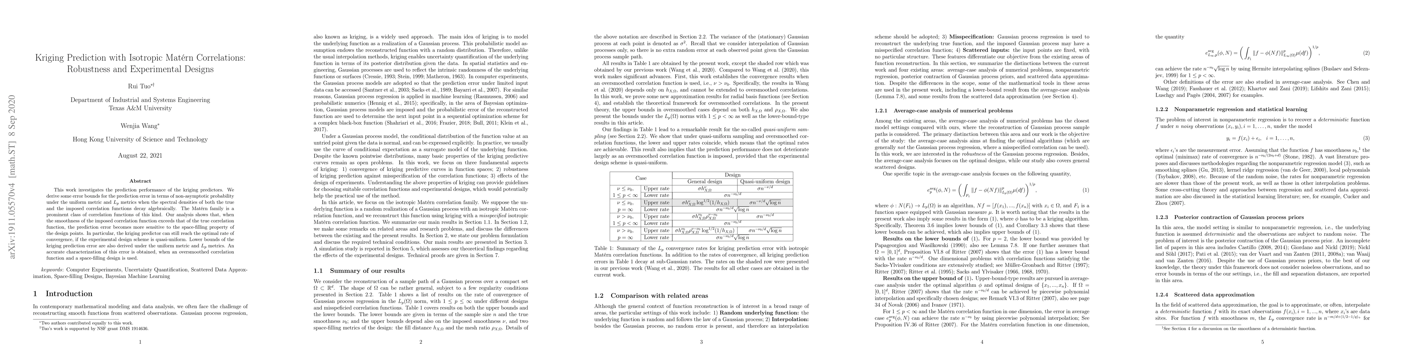 This work investigates the prediction performance of the kriging predictors. We derive some error bounds for the prediction error in terms of non-asymptotic probability under the uniform metric and $L_p$ metrics when the spectral densities of both the true and the imposed correlation functions decay algebraically. The Mat\'ern family is a prominent class of correlation functions of this kind. Our analysis shows that, when the smoothness of the imposed correlation function exceeds that of the true correlation function, the prediction error becomes more sensitive to the space-filling property of the design points. In particular, the kriging predictor can still reach the optimal rate of convergence, if the experimental design scheme is quasi-uniform. Lower bounds of the kriging prediction error are also derived under the uniform metric and $L_p$ metrics. An accurate characterization of this error is obtained, when an oversmoothed correlation function and a space-filling design is used.