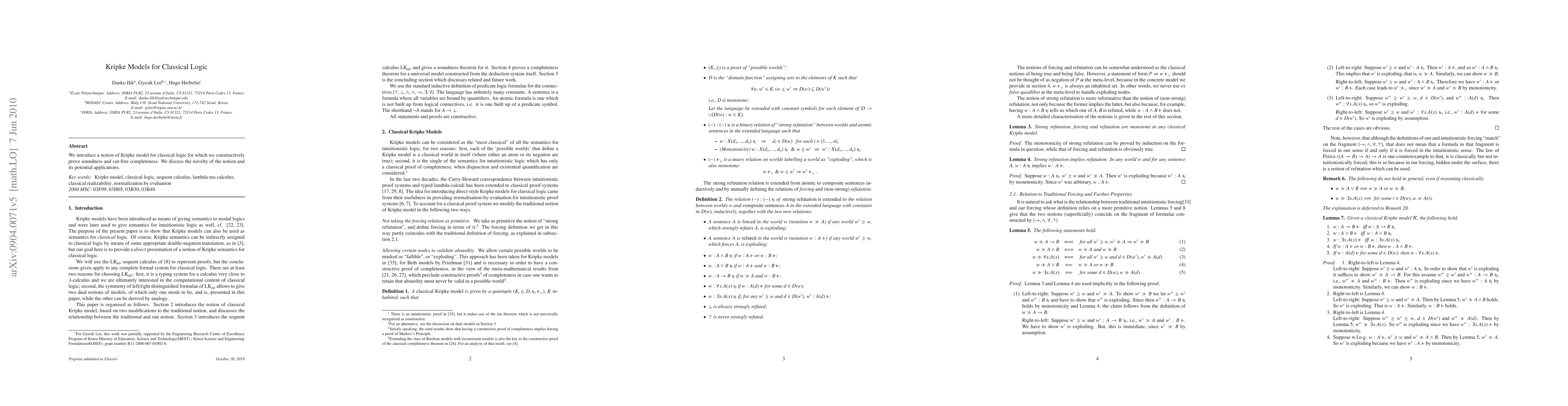 We introduce a notion of Kripke model for classical logic for which we constructively prove soundness and cut-free completeness. We discuss the novelty of the notion and its potential applications.