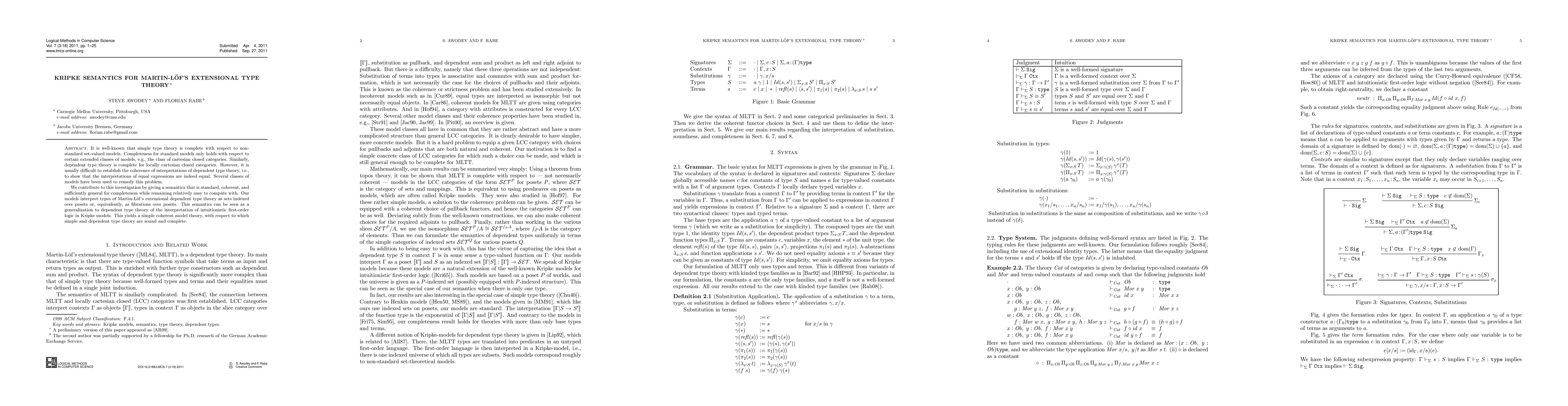 It is well-known that simple type theory is complete with respect to non-standard set-valued models. Completeness for standard models only holds with respect to certain extended classes of models, e.g., the class of cartesian closed categories. Similarly, dependent type theory is complete for locally cartesian closed categories. However, it is usually difficult to establish the coherence of interpretations of dependent type theory, i.e., to show that the interpretations of equal expressions are indeed equal. Several classes of models have been used to remedy this problem. We contribute to this investigation by giving a semantics that is standard, coherent, and sufficiently general for completeness while remaining relatively easy to compute with. Our models interpret types of Martin-L\"of's extensional dependent type theory as sets indexed over posets or, equivalently, as fibrations over posets. This semantics can be seen as a generalization to dependent type theory of the interpretation of intuitionistic first-order logic in Kripke models. This yields a simple coherent model theory, with respect to which simple and dependent type theory are sound and complete.