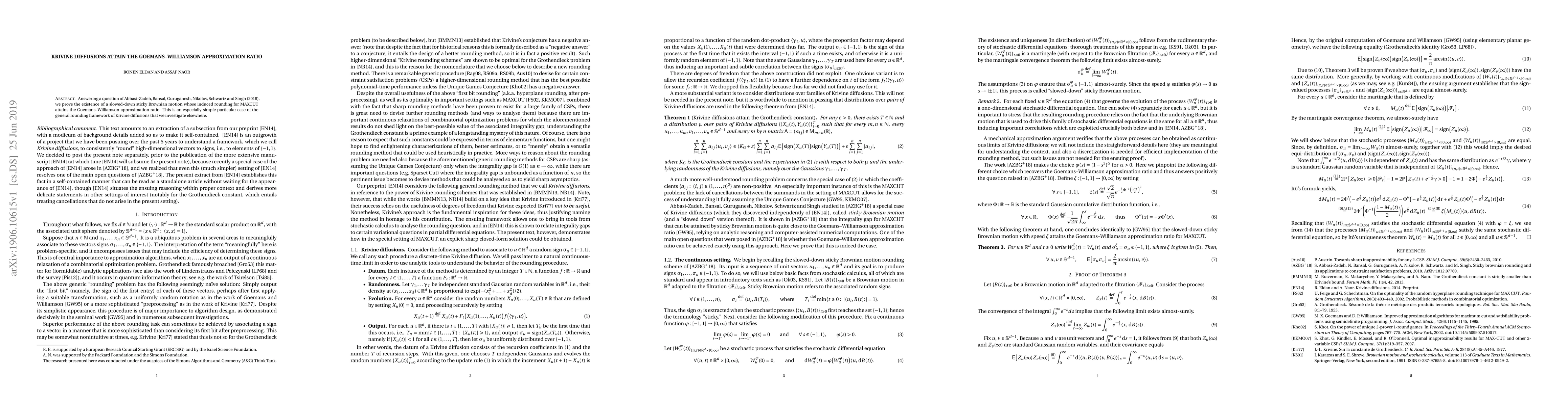 This paper proves that a slowed-down sticky Brownian motion, specifically a type of Krivine diffusion, achieves the Goemans-Williamson approximation ratio for the MAXCUT problem, answering a question posed by Abbasi-Zadeh et al. (2018). This result is part of a broader investigation into the general framework of Krivine diffusions.