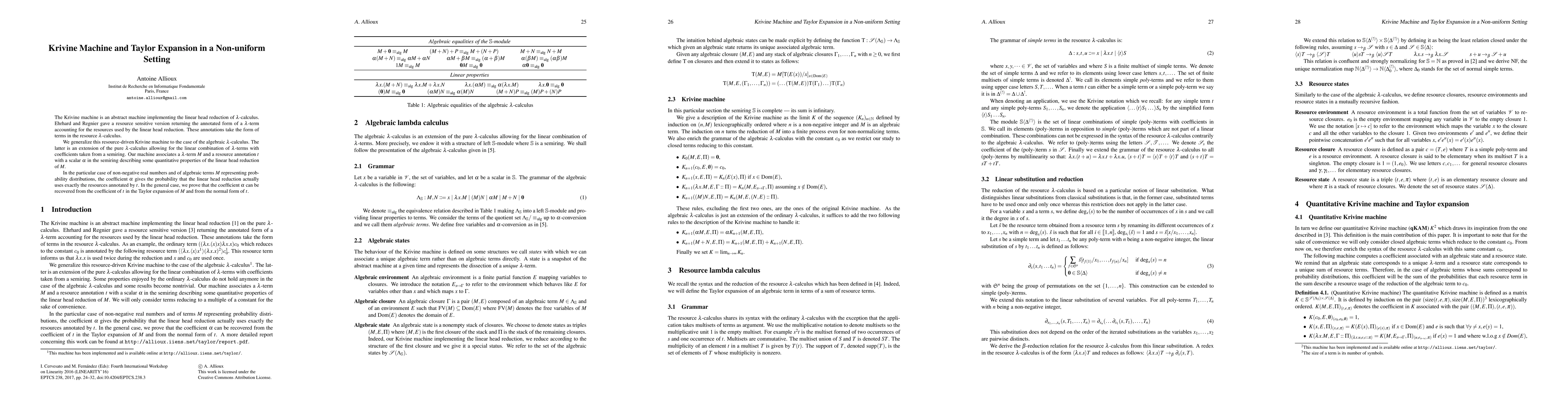 This paper generalizes the resource-sensitive Krivine machine to the algebraic lambda-calculus, associating resource annotations with lambda-terms and demonstrating how coefficients in the Taylor expansion can recover quantitative properties of linear head reductions. The specific case of probability distributions is also explored, where the coefficient indicates the probability of resource usage.