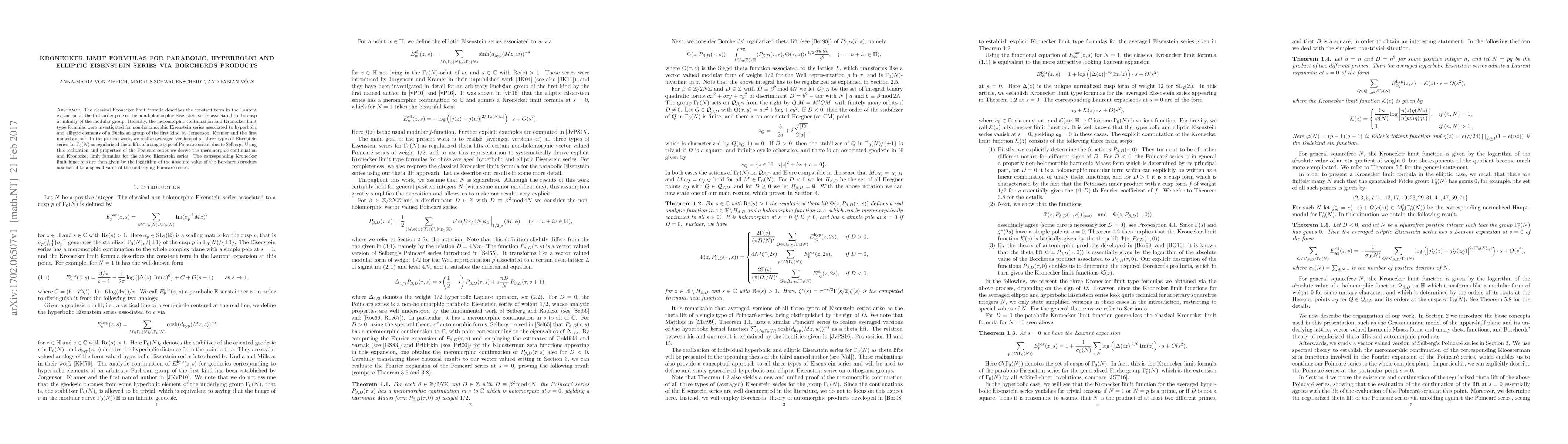 The classical Kronecker limit formula describes the constant term in the Laurent expansion at the first order pole of the non-holomorphic Eisenstein series associated to the cusp at infinity of the modular group. Recently, the meromorphic continuation and Kronecker limit type formulas were investigated for non-holomorphic Eisenstein series associated to hyperbolic and elliptic elements of a Fuchsian group of the first kind by Jorgenson, Kramer and the first named author. In the present work, we realize averaged versions of all three types of Eisenstein series for $\Gamma_0(N)$ as regularized theta lifts of a single type of Poincar\'e series, due to Selberg. Using this realization and properties of the Poincar\'e series we derive the meromorphic continuation and Kronecker limit formulas for the above Eisenstein series. The corresponding Kronecker limit functions are then given by the logarithm of the absolute value of the Borcherds product associated to a special value of the underlying Poincar\'e series.