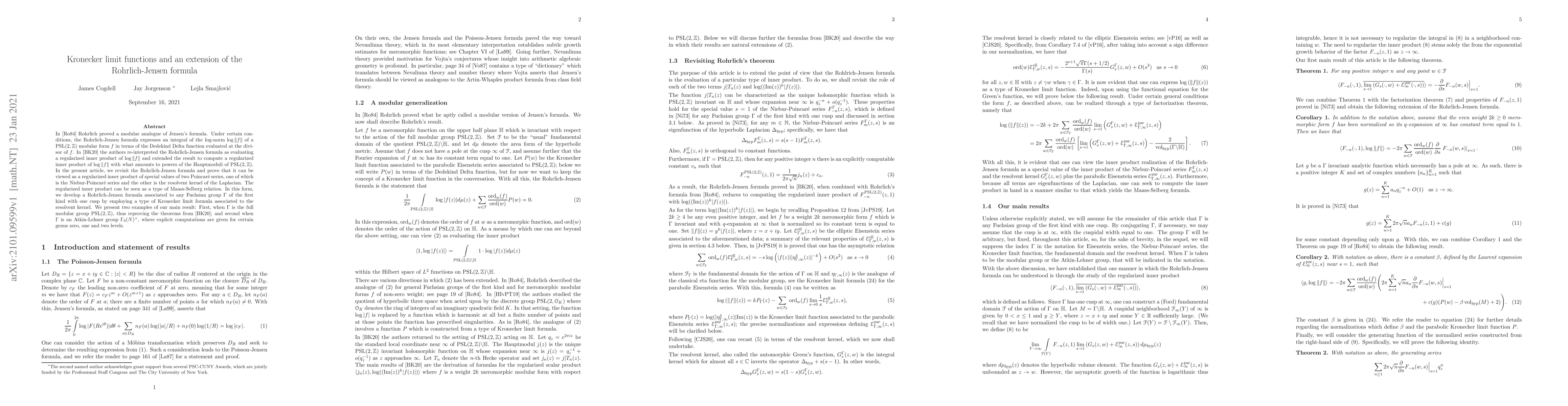 In 1984 Rohrlich proved a modular analogue of Jensen's formula. Under certain conditions, the Rohrlich-Jensen formula expresses an integral of the log-norm $\log \Vert f \Vert$ of a $\text{\rm PSL}(2,\ZZ)$ modular form $f$ in terms of the Dedekind Delta function evaluated at the divisor of $f$. Recently, Bringmann-Kane re-interpreted the Rohrlich-Jensen formula as evaluating a regularized inner product of $\log \Vert f \Vert$ and extended the result to compute a regularized inner product of $\log \Vert f \Vert$ with what amounts to powers of the Hauptmoduli of $\text{\rm PSL}(2,\ZZ)$. In the present article, we revisit the Rohrlich-Jensen formula and prove that it can be viewed as a regularized inner product of special values of two Poincar\'e series, one of which is the Niebur-Poincar\'e series and the other is the resolvent kernel of the Laplacian. The regularized inner product can be seen as a type of Maass-Selberg relation. In this form, we develop a Rohrlich-Jensen formula associated to any Fuchsian group $\Gamma$ of the first kind with one cusp by employing a type of Kronecker limit formula associated to the resolvent kernel. We present two examples of our main result: First, when $\Gamma$ is the full modular group $\text{\rm PSL}(2,\ZZ)$, thus reproving the theorems from \cite{BK19}; and second when $\Gamma$ is an Atkin-Lehner group $\Gamma_{0}(N)^+$, where explicit computations are given for certain genus zero, one and two levels.