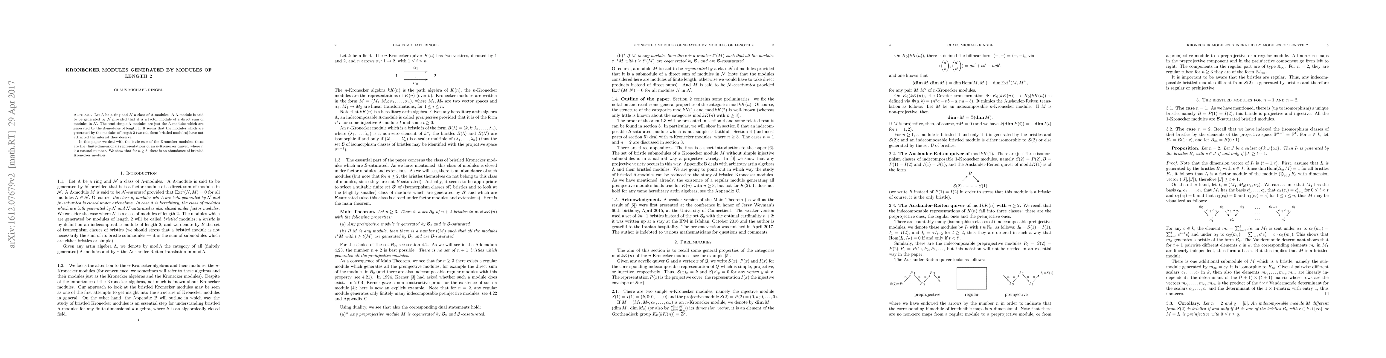 Let $\Lambda$ be a ring and $\mathcal N$ a class of $\Lambda$-modules. A $\Lambda$-module is said to be generated by $\mathcal N$ provided that it is a factor module of a direct sum of modules in $\mathcal N$. The semi-simple $\Lambda$-modules are just the $\Lambda$-modules which are generated by the $\Lambda$-modules of length 1. It seems that the modules which are generated by the modules of length $2$ (we call them bristled modules) have not attracted the interest they deserve. In this paper we deal with the basic case of the Kronecker modules, these are the (finite-dimensional) representations of an $n$-Kronecker quiver, where $n$ is a natural number. We show that for $n\ge 3$, there is an abundance of bristled Kronecker modules.