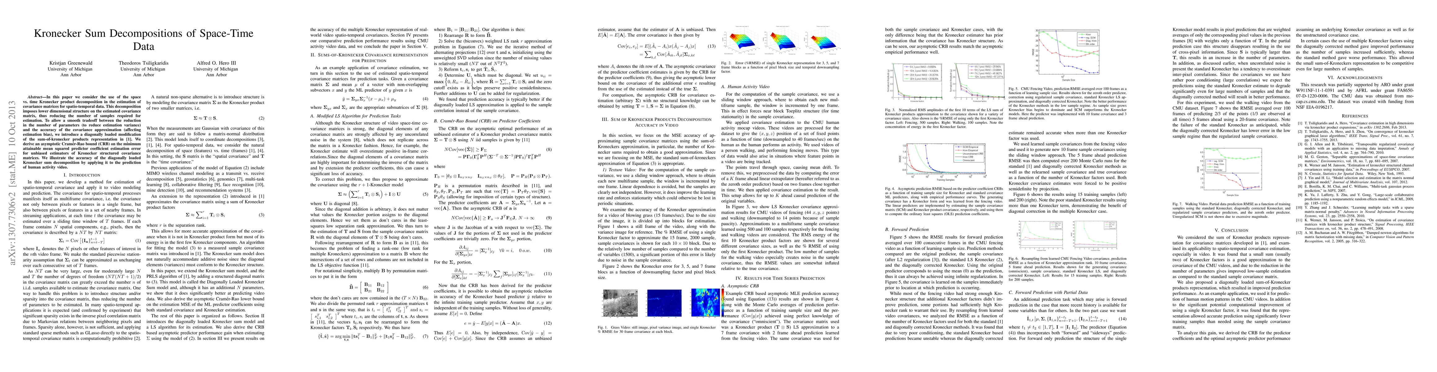 In this paper we consider the use of the space vs. time Kronecker product decomposition in the estimation of covariance matrices for spatio-temporal data. This decomposition imposes lower dimensional structure on the estimated covariance matrix, thus reducing the number of samples required for estimation. To allow a smooth tradeoff between the reduction in the number of parameters (to reduce estimation variance) and the accuracy of the covariance approximation (affecting estimation bias), we introduce a diagonally loaded modification of the sum of kronecker products representation [1]. We derive a Cramer-Rao bound (CRB) on the minimum attainable mean squared predictor coefficient estimation error for unbiased estimators of Kronecker structured covariance matrices. We illustrate the accuracy of the diagonally loaded Kronecker sum decomposition by applying it to video data of human activity.