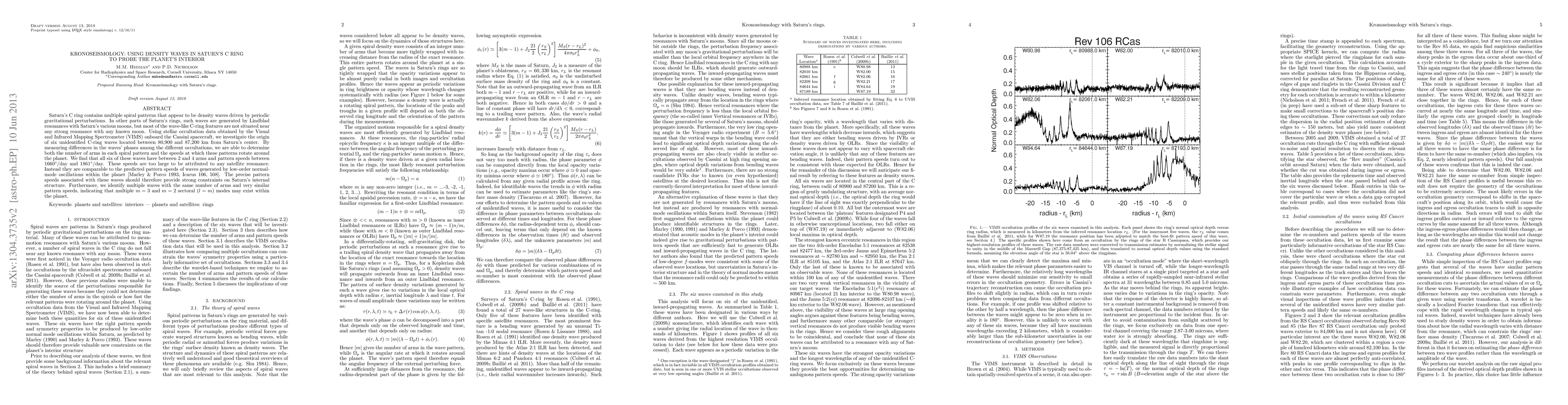 This research uses density waves in Saturn's C ring to infer the planet's internal structure, finding that the wave pattern speeds suggest oscillations rather than satellite resonances. These waves provide insights into Saturn's internal dynamics and indicate the presence of multiple sectoral modes.