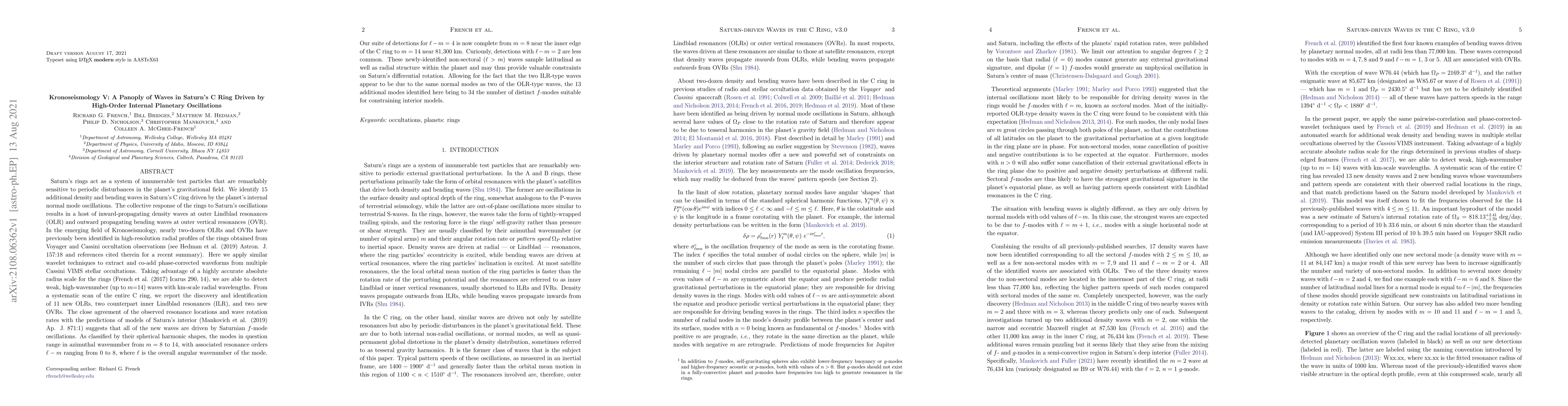 This paper identifies 15 new density and bending waves in Saturn's C ring, driven by the planet's internal normal mode oscillations, including 11 new Outer Lindblad Resonances and 2 new Outer Vertical Resonances. These findings suggest that the waves are linked to Saturnian f-mode oscillations, potentially offering insights into Saturn's differential rotation.