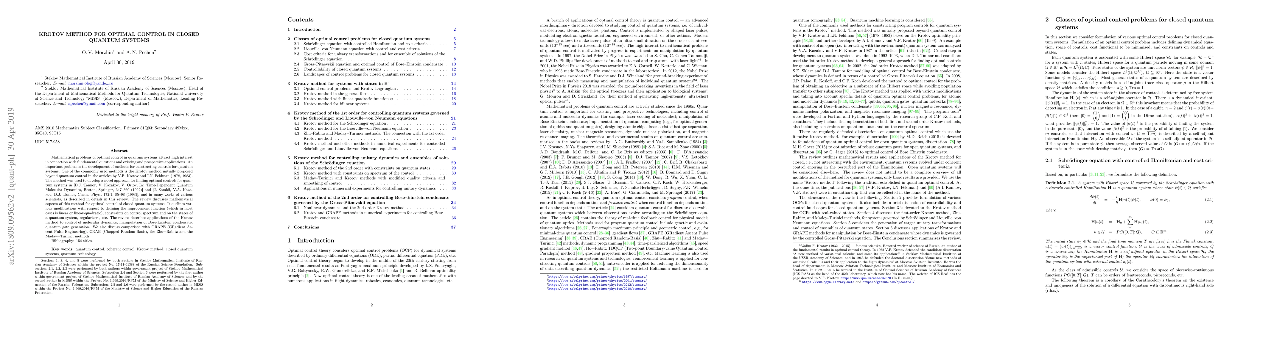 The paper presents detailed mathematical aspects of the Krotov method for optimal control of closed quantum systems, including various modifications and comparisons with other methods.