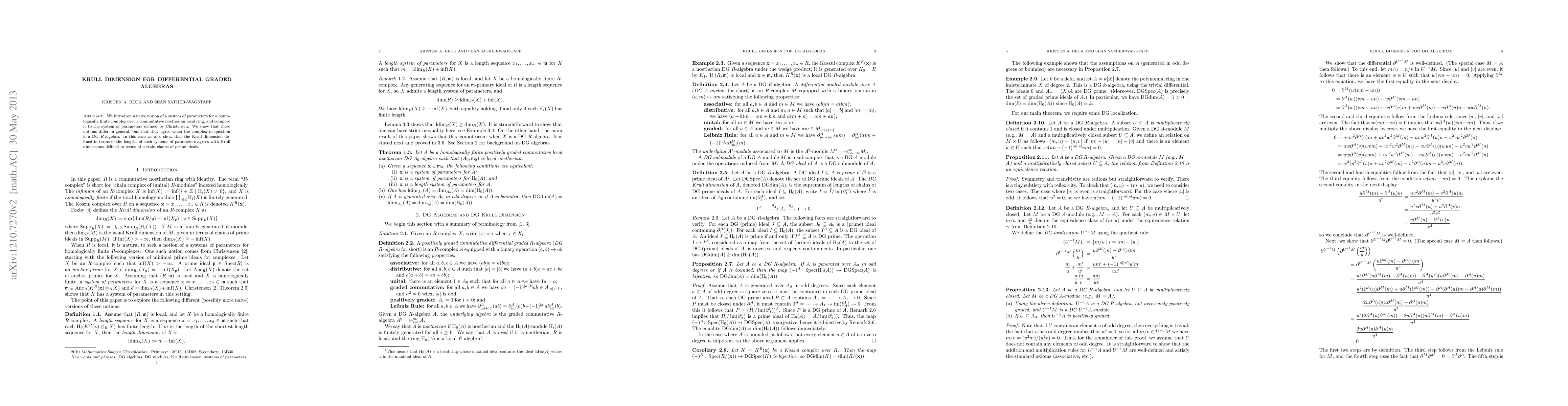 The research presents a novel approach to defining systems of parameters for complexes and linking them to Krull dimensions, distinguishing itself by focusing on differential graded algebras and providing examples that highlight the necessity of specific assumptions.
