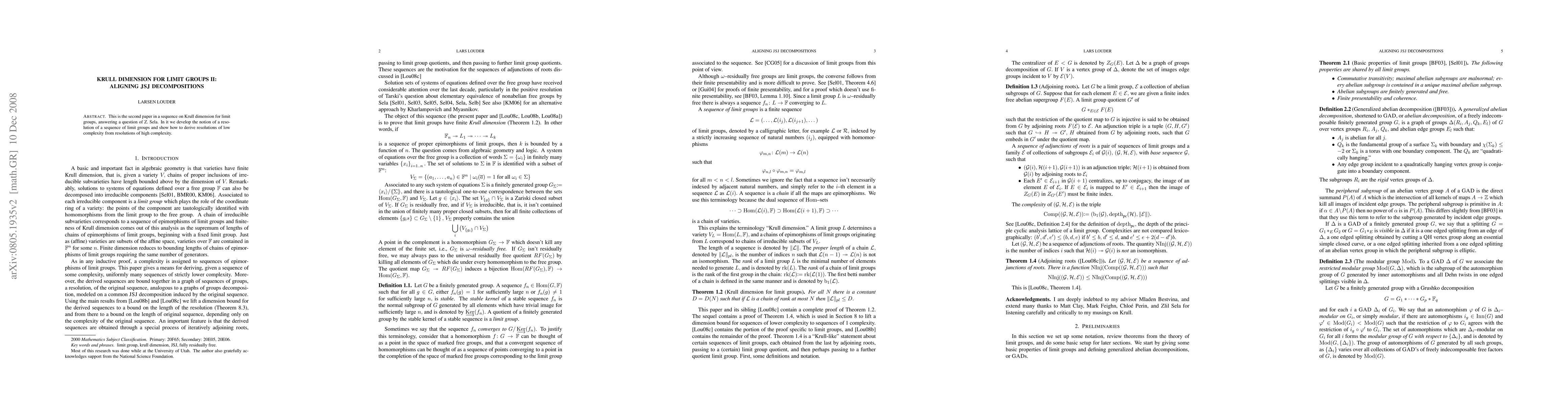 This paper builds on Krull dimension studies for limit groups, addressing a question posed by Z. Sela. It introduces a method for deriving resolutions of low complexity from high complexity, thereby advancing the understanding of JSJ decompositions in limit groups.