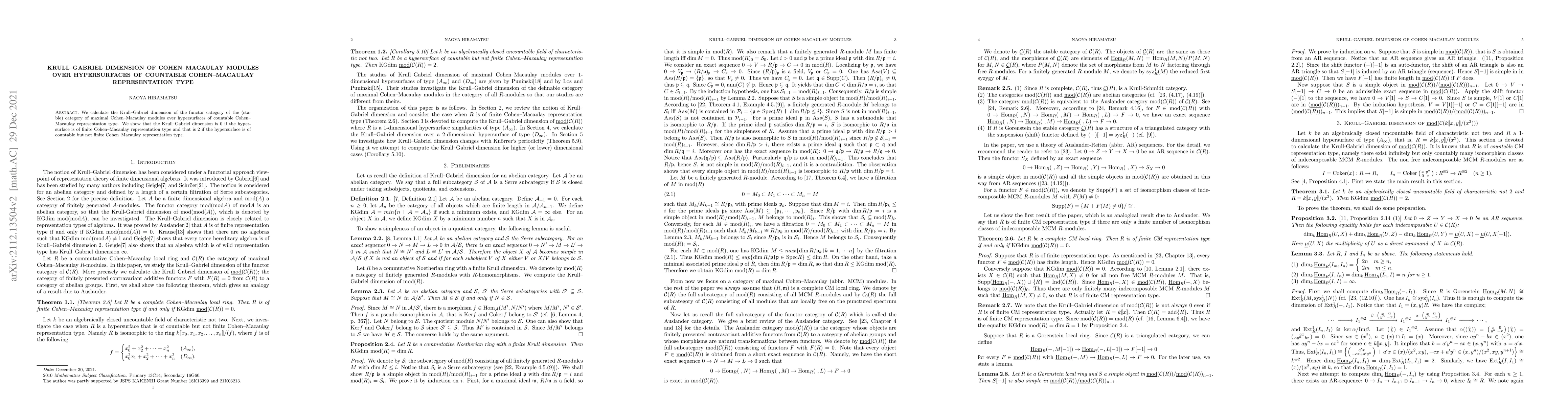 This research calculates the Krull--Gabriel dimension of functor categories for maximal Cohen--Macaulay modules over hypersurfaces, finding it to be $0$ for finite Cohen--Macaulay representation type and $2$ for countable but not finite types.