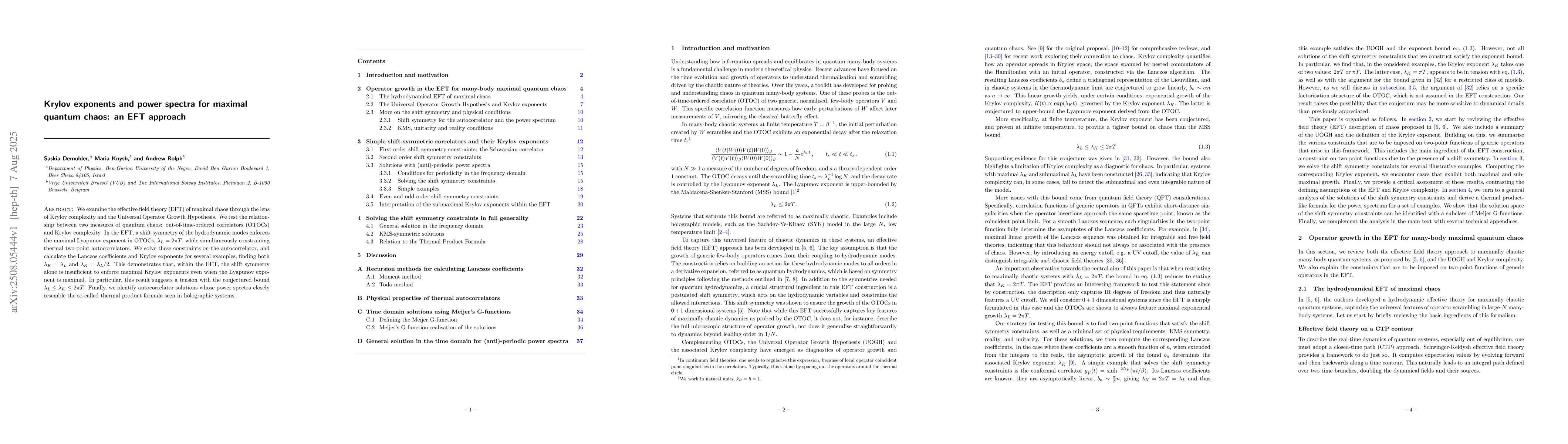 We examine the effective field theory (EFT) of maximal chaos through the lens of Krylov complexity and the Universal Operator Growth Hypothesis. We test the relationship between two measures of quantum chaos: out-of-time-ordered correlators (OTOCs) and Krylov complexity. In the EFT, a shift symmetry of the hydrodynamic modes enforces the maximal Lyapunov exponent in OTOCs, $\lambda_L = 2\pi T$, while simultaneously constraining thermal two-point autocorrelators. We solve these constraints on the autocorrelator, and calculate the Lanczos coefficients and Krylov exponents for several examples, finding both $\lambda_K = \lambda_L$ and $\lambda_K = \lambda_L/2$. This demonstrates that, within the EFT, the shift symmetry alone is insufficient to enforce maximal Krylov exponents even when the Lyapunov exponent is maximal. In particular, this result suggests a tension with the conjectured bound $\lambda_L \leq \lambda_K \leq 2\pi T$. Finally, we identify autocorrelator solutions whose power spectra closely resemble the so-called thermal product formula seen in holographic systems.