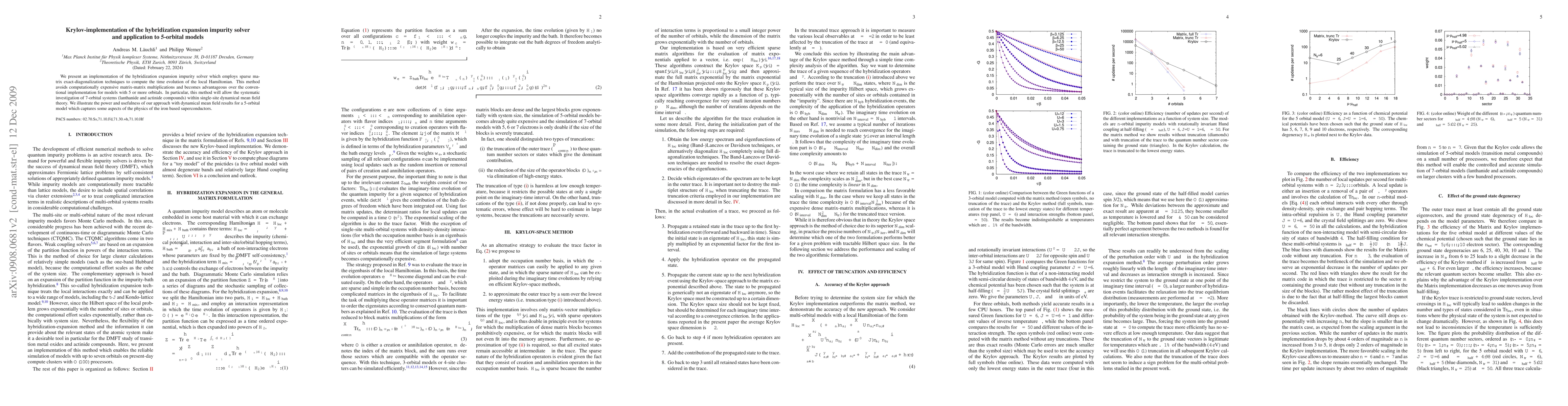 This paper introduces a Krylov-based implementation of the hybridization expansion impurity solver, utilizing sparse matrix techniques to efficiently compute local Hamiltonian time evolution, which is particularly advantageous for systems with 5 or more orbitals. The method enables the study of 7-orbital systems, exemplified by its application to a 5-orbital model relevant to iron-based superconductors.