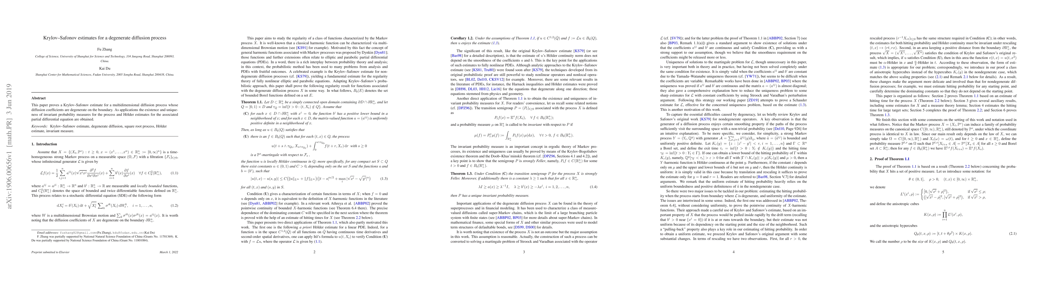 This paper establishes a Krylov-Safonov estimate for a degenerate diffusion process with boundary-degenerate diffusion coefficients, leading to the existence and uniqueness of invariant probability measures and Hölder estimates for the associated partial differential equation.