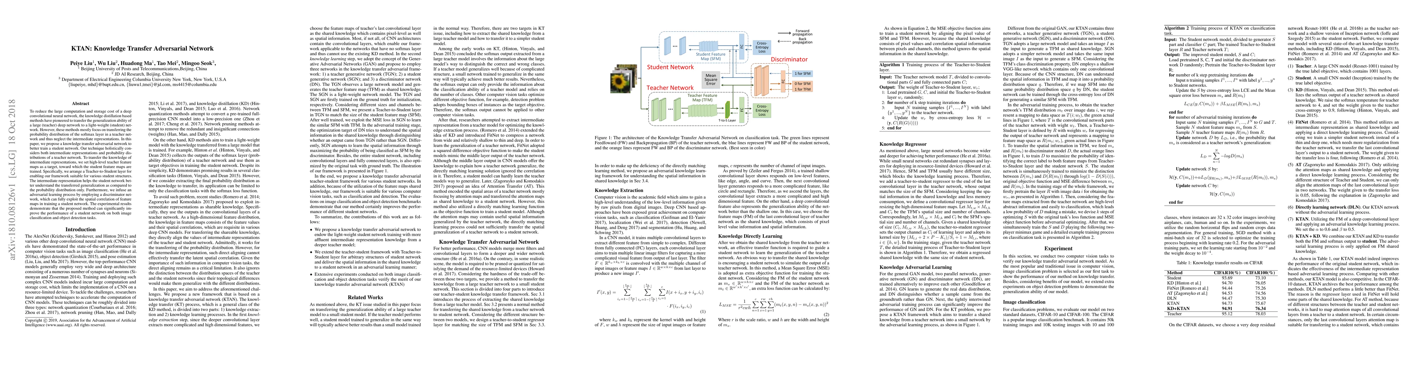 The paper proposes a Knowledge Transfer Adversarial Network (KTAN) to enhance the training of a lightweight student network by transferring both intermediate representations and softmax probability distributions from a large teacher network, using a Teacher-to-Student layer and an adversarial learning process with a discriminator network to improve spatial feature map correlations, resulting in better performance on image classification and object detection tasks.