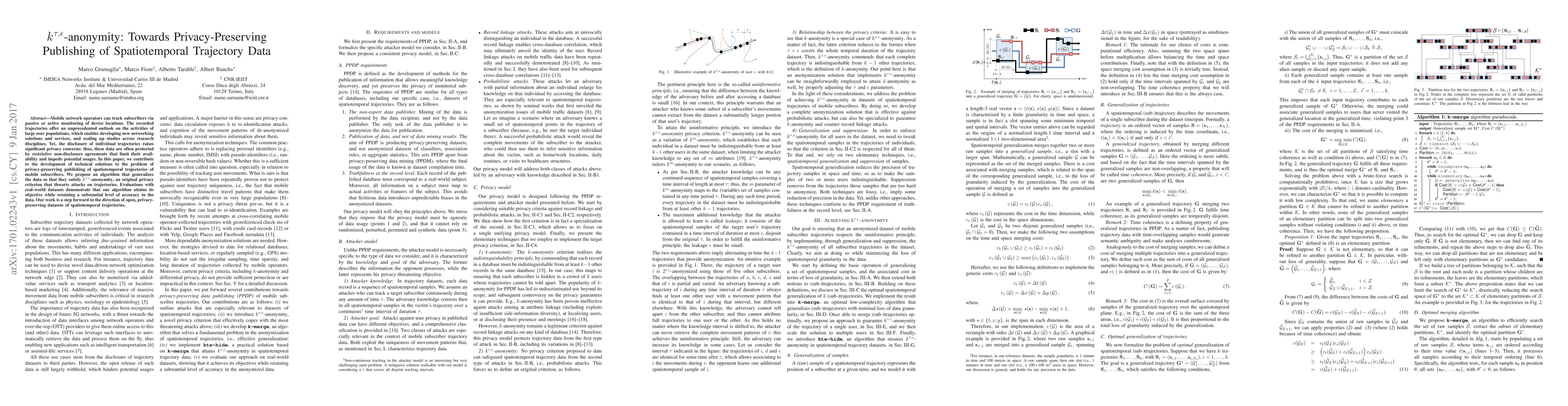This paper proposes an algorithm to achieve $k^{\tau,\epsilon}$-anonymity for privacy-preserving publishing of mobile subscribers' spatiotemporal trajectory data, balancing privacy and data utility through generalized data. Evaluations show that the algorithm effectively protects individual privacy while maintaining data accuracy.