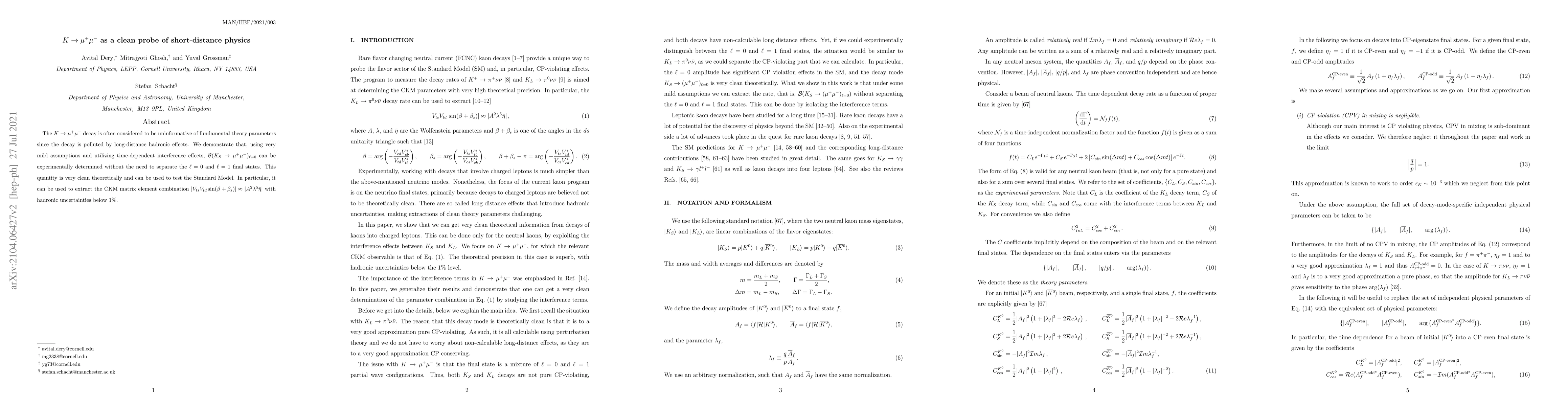 The $K\to\mu^+\mu^-$ decay is often considered to be uninformative of fundamental theory parameters since the decay is polluted by long-distance hadronic effects. We demonstrate that, using very mild assumptions and utilizing time-dependent interference effects, ${\cal B}(K_S\to\mu^+\mu^-)_{\ell=0}$ can be experimentally determined without the need to separate the $\ell=0$ and $\ell=1$ final states. This quantity is very clean theoretically and can be used to test the Standard Model. In particular, it can be used to extract the CKM matrix element combination $\left|V_{ts}V_{td}\sin(\beta+\beta_s)\right|\approx |A^2 \lambda^5 \bar \eta|$ with hadronic uncertainties below $1\%$.