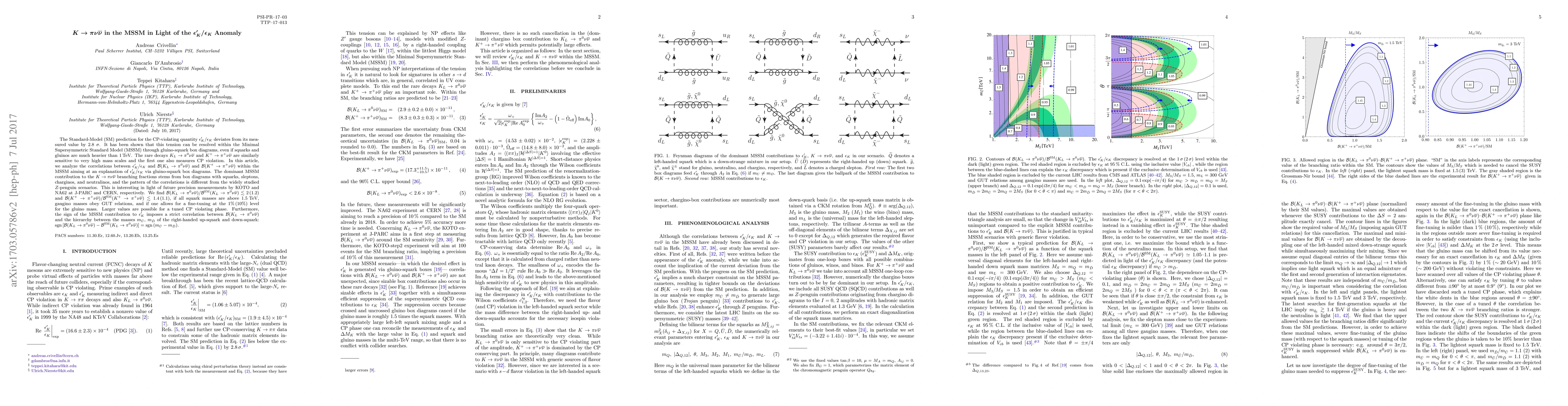 This paper explores how the Minimal Supersymmetric Standard Model (MSSM) can resolve the discrepancy between the Standard Model prediction and the measured value of the CP-violating quantity $\epsilon^{\prime}_K/\epsilon_K$ through gluino-squark box diagrams, and analyzes the correlation between this anomaly and the branching ratios of rare kaon decays $K_L \to \pi^0\nu\bar{\nu}$ and $K^+ \to \pi^+\nu\bar{\nu}$. The study finds that the MSSM contributions to these decays depend on squark and gaugino masses, with implications for future precision measurements.