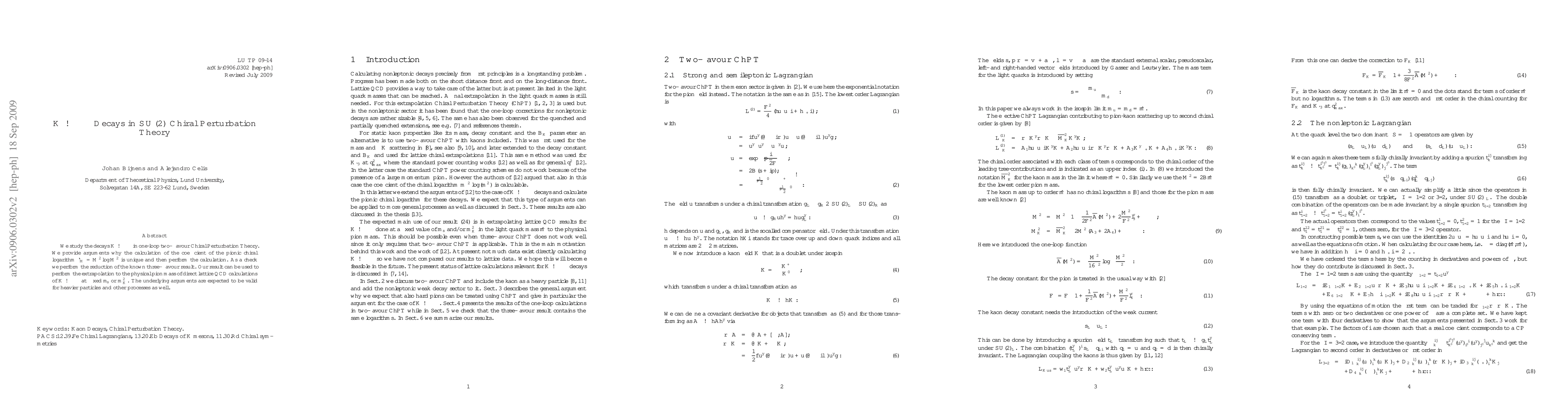 We study the decays $K\to\pi\pi$ in one-loop two-flavour Chiral Perturbation Theory. We provide arguments why the calculation of the coefficient of the pionic chiral logarithm $\logm = M^2\log M^2$ is unique and then perform the calculation. As a check we perform the reduction of the known three-flavour result. The underlying arguments are expected to be valid for heavier particles and other processes as well.