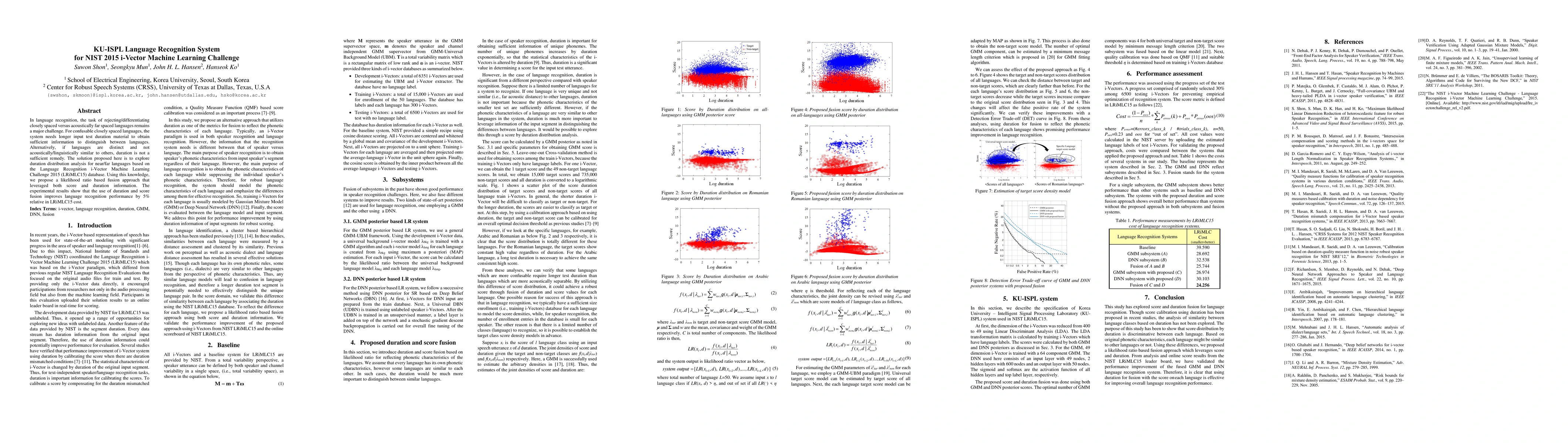 This research paper proposes a language recognition system that uses duration distribution analysis to improve performance in distinguishing between closely spaced languages. The proposed likelihood ratio based fusion approach leverages both score and duration information, resulting in a 5% relative improvement in language recognition accuracy.