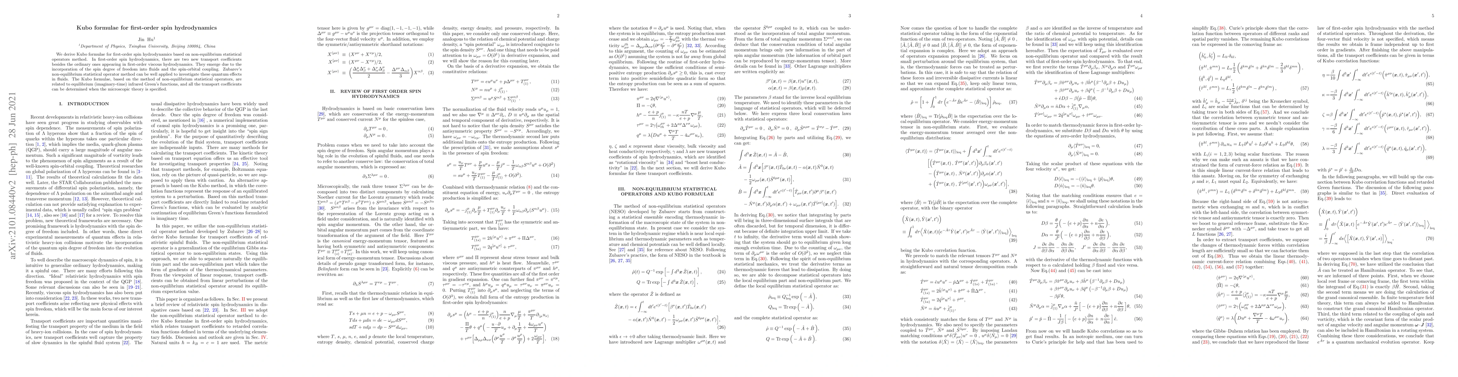 The paper presents a systematic derivation of Kubo formulae for spin hydrodynamics using non-equilibrium statistical operators, linking transport coefficients to equilibrium Green's functions.