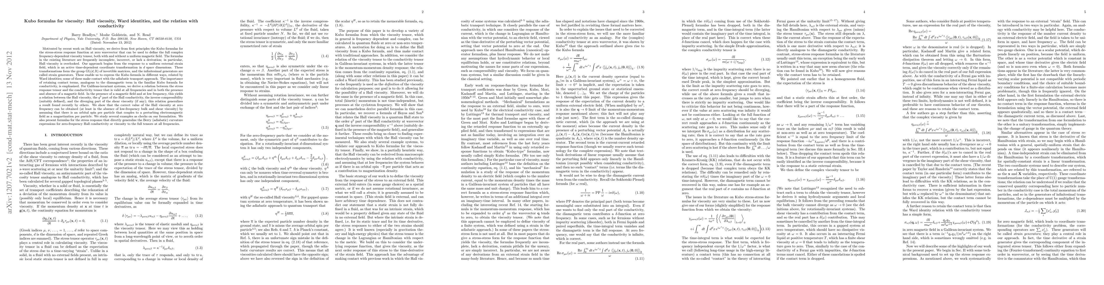 This paper derives accurate Kubo formulas for the complex frequency-dependent viscosity tensor, including Hall viscosity, from first principles. It establishes a relation between stress response and conductivity tensors in Galilean-invariant systems, generalizing previous results to include magnetic fields and low frequencies.