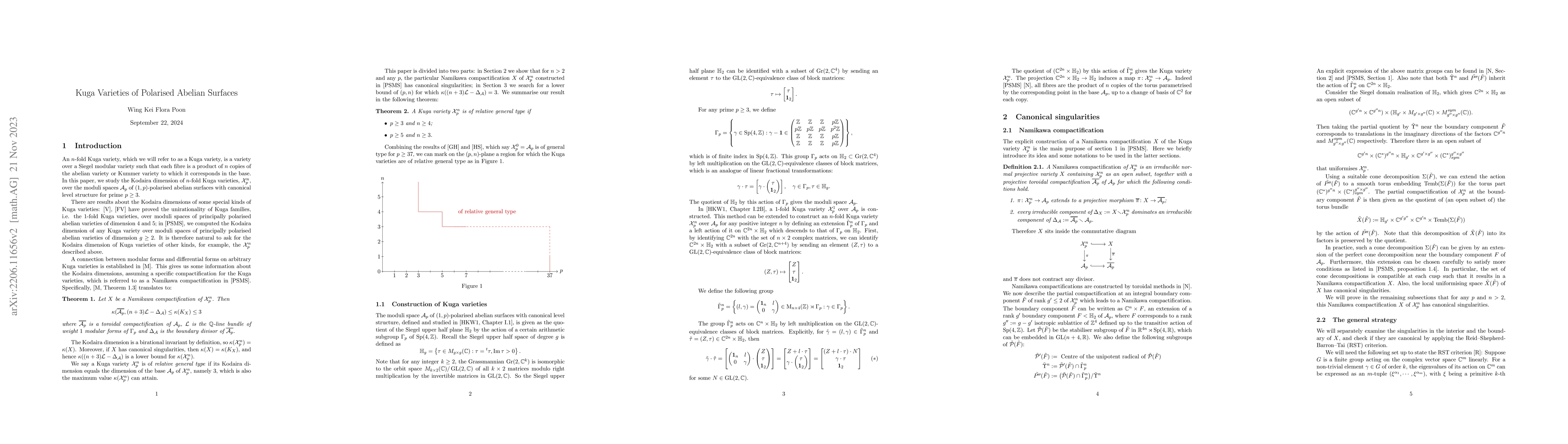 Summary: This paper investigates the Kodaira dimension of Kuga varieties linked to moduli spaces of $(1, p)$-polarised abelian surfaces with level structure, focusing on primes $p \geq 3$. The study aims to understand the complex geometry and arithmetic properties of these Kuga varieties.