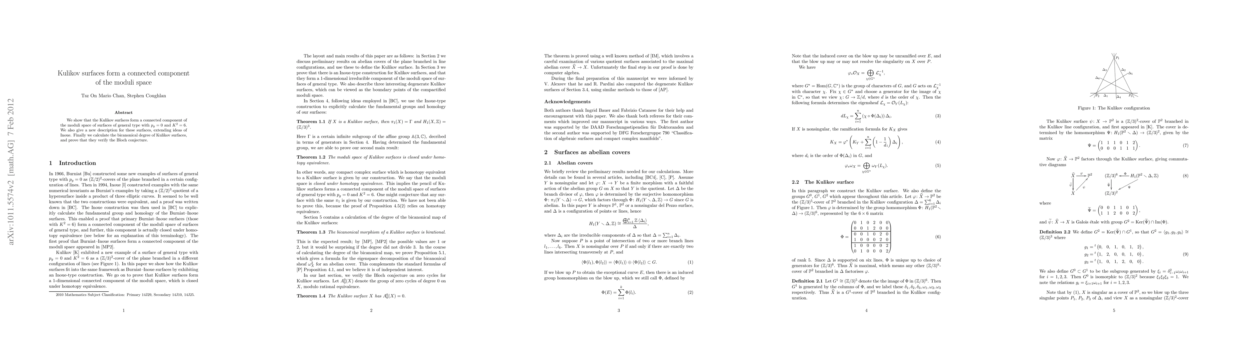Kulikov surfaces constitute a connected component within the moduli space of surfaces of general type characterized by p_g=0 and K^2=6, extending Inoue's ideas and verifying the Bloch conjecture. The bicanonical degree of these surfaces is also calculated.