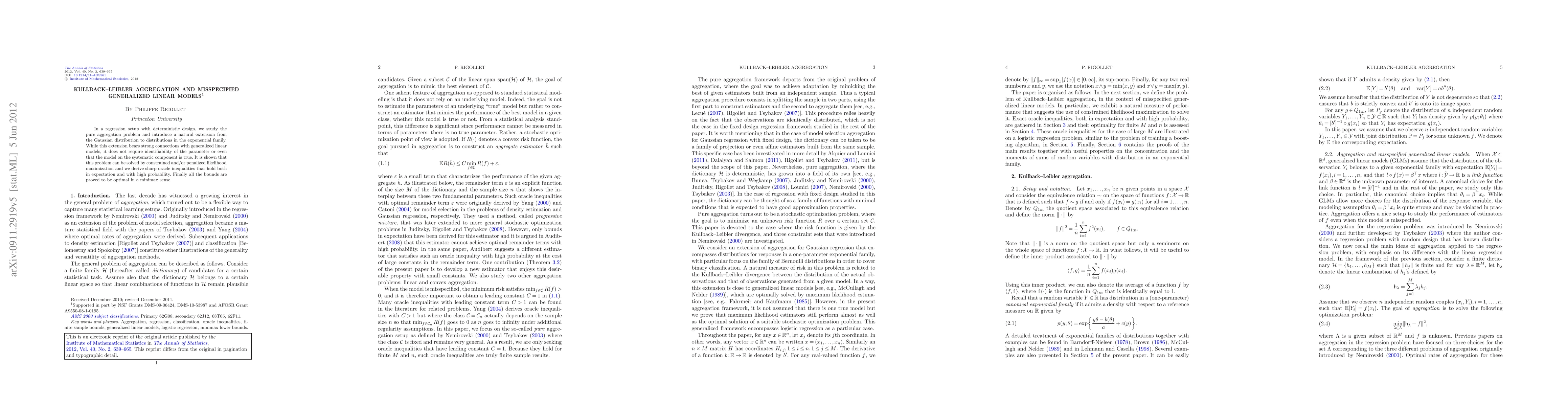 This paper extends Kullback-Leibler aggregation to misspecified generalized linear models, demonstrating that constrained and penalized likelihood maximization can solve the problem without requiring model identifiability or truth. The derived oracle inequalities are shown to be optimal in a minimax sense.