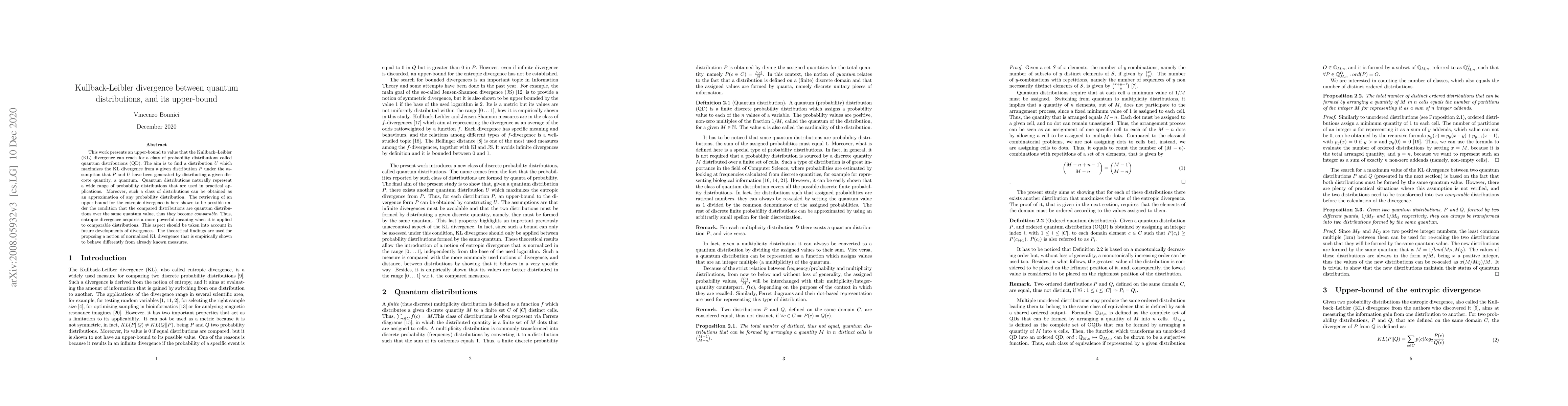 This paper establishes an upper-bound for the Kullback-Leibler divergence between quantum distributions, demonstrating its significance when comparing distributions derived from the same quantum value. It also introduces a novel normalized KL divergence measure that exhibits distinct empirical behavior.