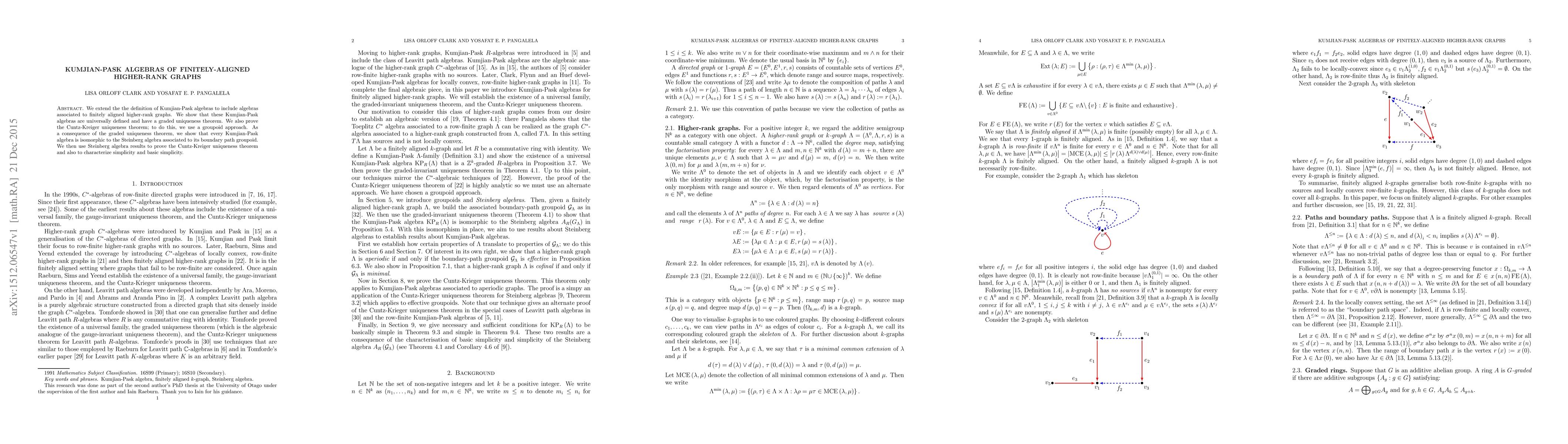 This paper extends Kumjian-Pask algebras to finitely-aligned higher-rank graphs, proving their universal definition and graded uniqueness theorem. It also establishes the Cuntz-Kreiger uniqueness theorem using a groupoid approach, showing every such algebra is isomorphic to its associated Steinberg algebra.
