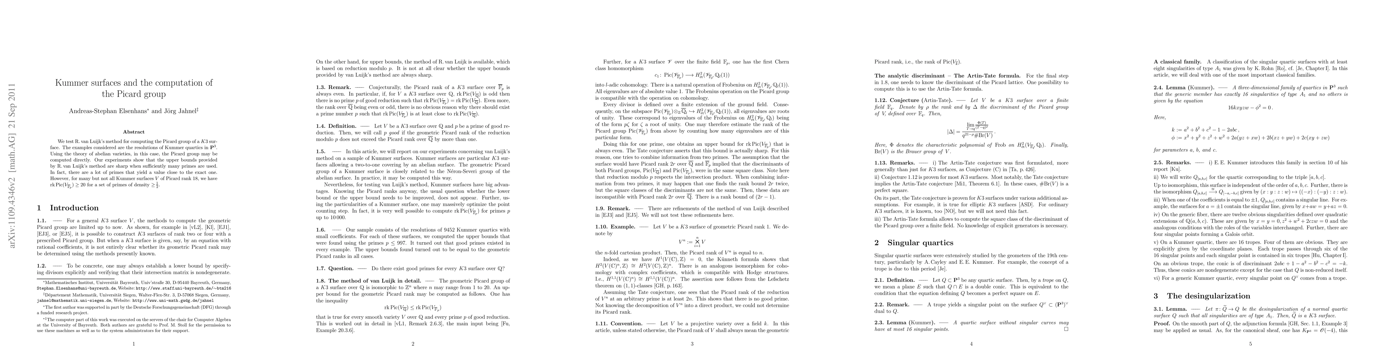 This paper tests R. van Luijk's method for computing the Picard group of K3 surfaces by examining Kummer quartics in projective space. It finds that while van Luijk's method yields sharp upper bounds with sufficient primes, many Kummer surfaces show Picard rank discrepancies for certain primes.