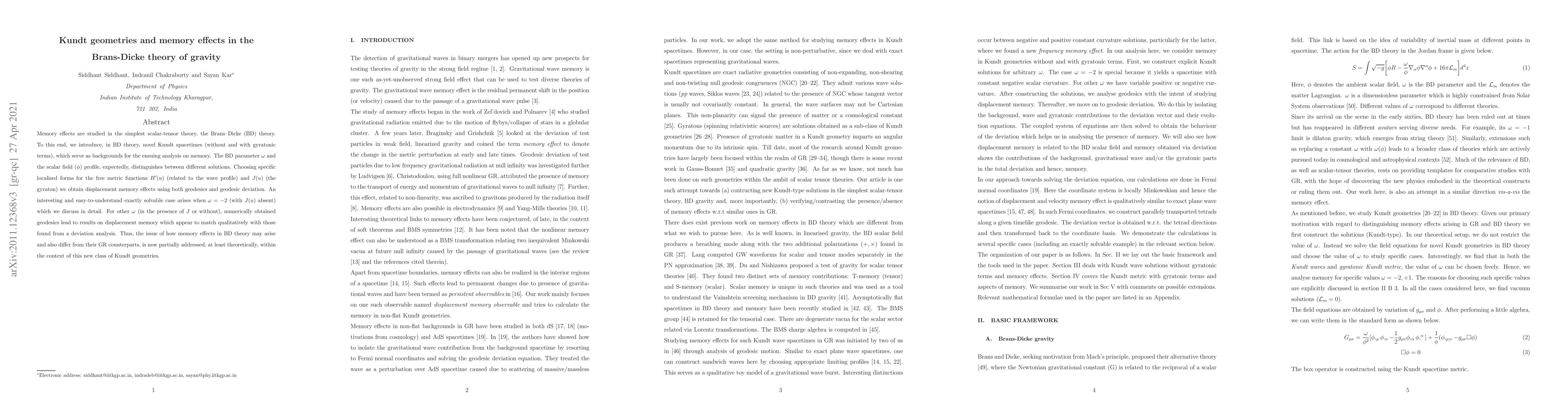 This paper explores memory effects in the Brans-Dicke theory of gravity using novel Kundt spacetimes. It finds that the BD parameter and scalar field profile influence solutions, with an interesting case arising when $omega=-2$. Both geodesics and geodesic deviation yield displacement memory effects, which qualitatively match numerically obtained results, thus partially addressing how memory effects in BD theory differ from GR.
