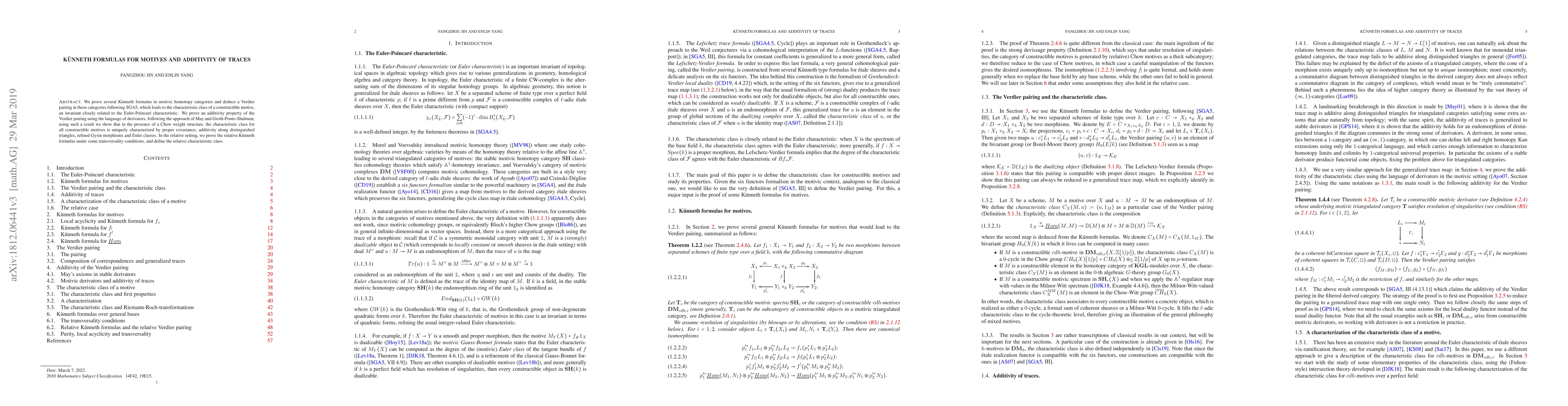 This paper proves K\"unneth formulas in motivic homotopy categories, establishing a Verdier pairing and showing its additivity via derivators. The study characterizes the characteristic class for constructible motives using proper covariance, additivity, refined Gysin morphisms, and Euler classes.