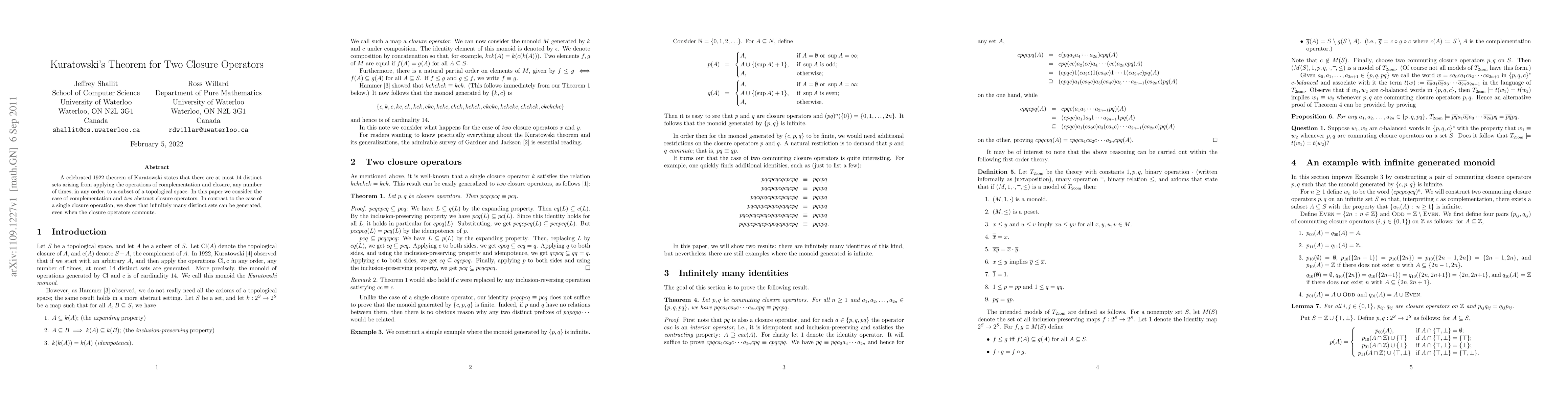 A celebrated 1922 theorem of Kuratowski states that there are at most 14 distinct sets arising from applying the operations of complementation and closure, any number of times, in any order, to a subset of a topological space. In this paper we consider the case of complementation and two abstract closure operators. In contrast to the case of a single closure operation, we show that infinitely many distinct sets can be generated, even when the closure operators commute.