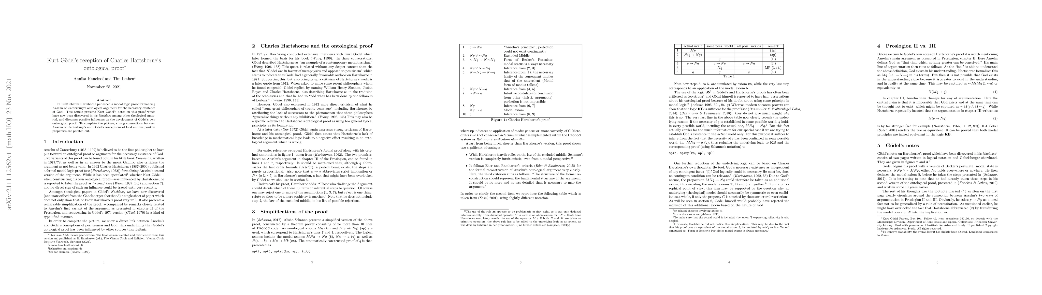 Summary: This paper explores Kurt Gödel's newly discovered notes on Charles Hartshorne's modal logic formalization of Anselm's ontological proof, suggesting influences on Gödel's own ontological proof and highlighting similarities between Anselm's and Gödel's conceptions of God.