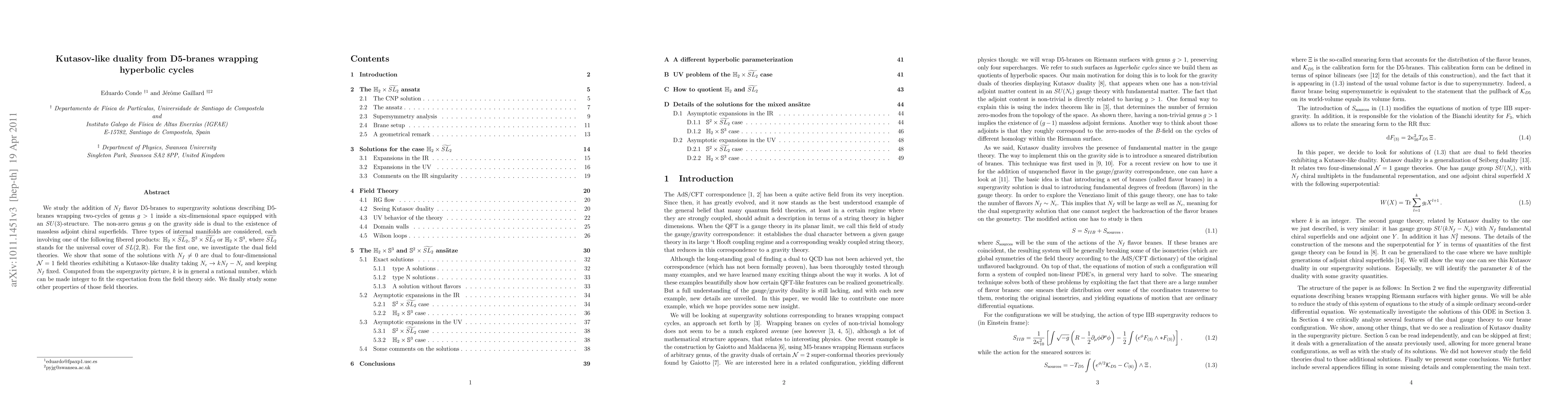 We study the addition of N_f flavor D5-branes to supergravity solutions describing D5-branes wrapping two-cycles of genus g>1 inside a six-dimensional space equipped with an SU(3)-structure. The non-zero genus g on the gravity side is dual to the existence of massless adjoint chiral superfields. Three types of internal manifolds are considered, each involving one of the following fibered products: H_2 x SL_2, S^2 x SL_2 or H_2 x S^3, where SL_2 stands for the universal cover of SL(2,R). For the first one, we investigate the dual field theories. We show that some of the solutions with N_f non-zero are dual to four-dimensional N = 1 field theories exhibiting a Kutasov-like duality taking N_c to k N_f - N_c, and keeping N_f fixed. Computed from the supergravity picture, k is in general a rational number, which can be made integer to fit the expectation from the field theory side. We finally study some other properties of those field theories.