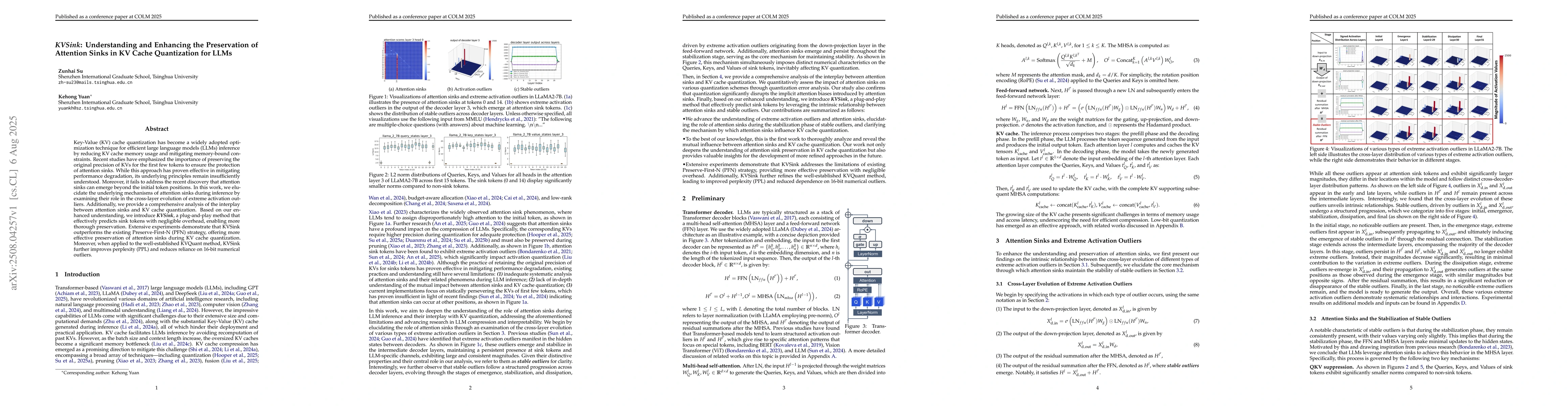 Key-Value (KV) cache quantization has become a widely adopted optimization technique for efficient large language models (LLMs) inference by reducing KV cache memory usage and mitigating memory-bound constraints. Recent studies have emphasized the importance of preserving the original precision of KVs for the first few tokens to ensure the protection of attention sinks. While this approach has proven effective in mitigating performance degradation, its underlying principles remain insufficiently understood. Moreover, it fails to address the recent discovery that attention sinks can emerge beyond the initial token positions. In this work, we elucidate the underlying mechanisms of attention sinks during inference by examining their role in the cross-layer evolution of extreme activation outliers. Additionally, we provide a comprehensive analysis of the interplay between attention sinks and KV cache quantization. Based on our enhanced understanding, we introduce \textit{\textbf{KVSink}}, a plug-and-play method that effectively predicts sink tokens with negligible overhead, enabling more thorough preservation. Extensive experiments demonstrate that KVSink outperforms the existing Preserve-First-N (PFN) strategy, offering more effective preservation of attention sinks during KV cache quantization. Moreover, when applied to the well-established KVQuant method, KVSink further improves perplexity (PPL) and reduces reliance on 16-bit numerical outliers.