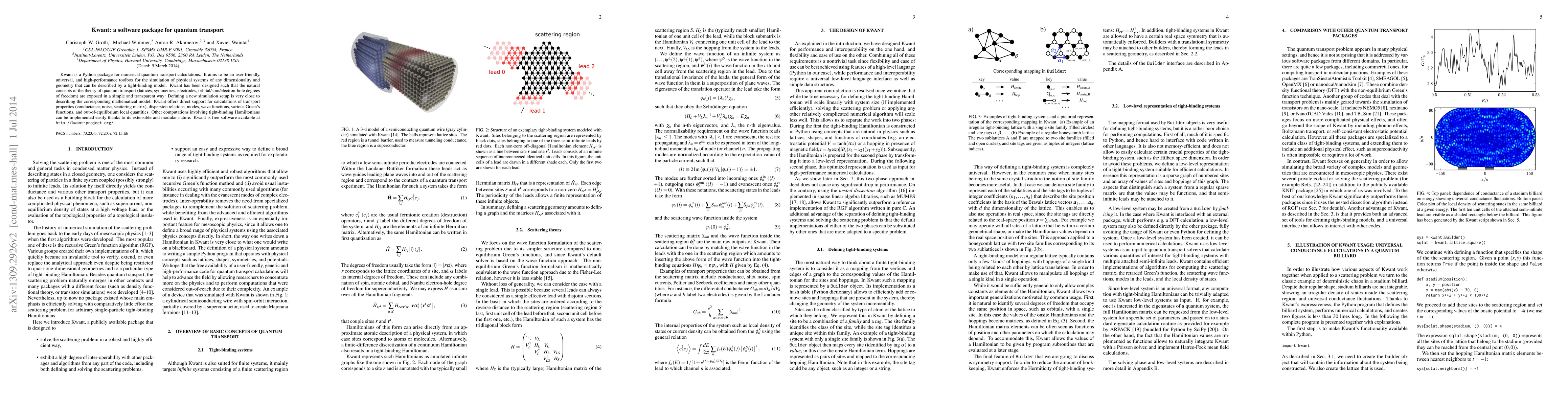 Kwant is a Python package that enables user-friendly simulation of quantum transport in physical systems described by tight-binding models, supporting various calculations of transport properties and other computations.