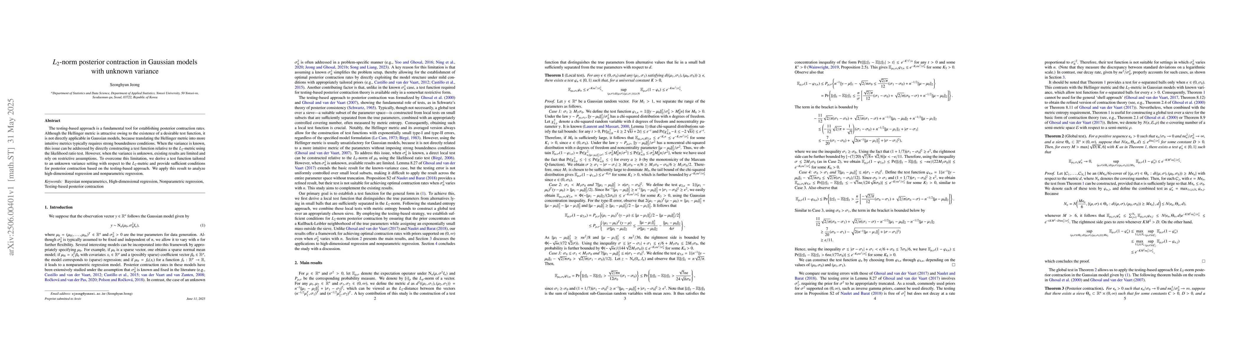 The paper employs a testing-based approach to establish posterior contraction rates, deriving a tailored $L_2$-metric test function for unknown variance in Gaussian models.